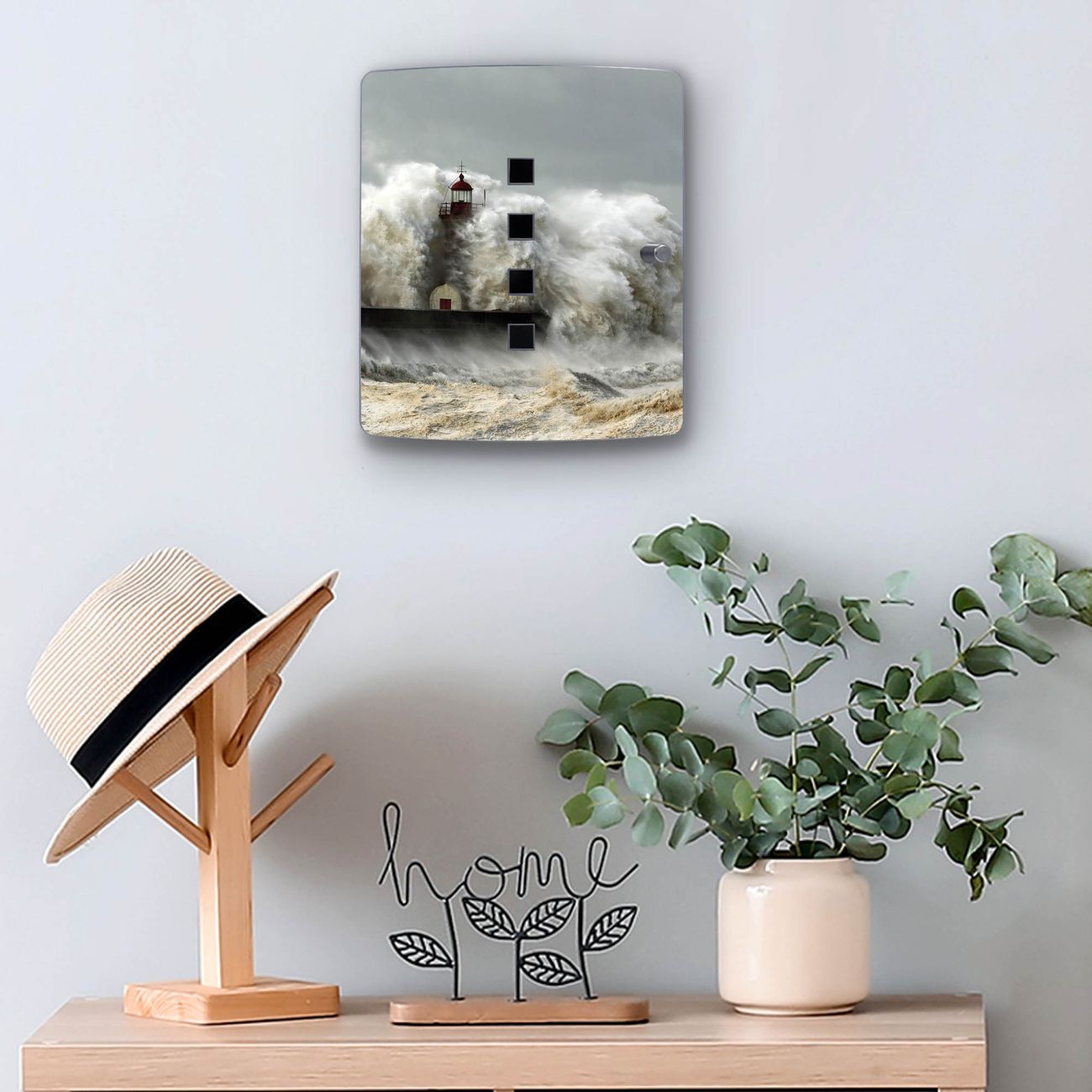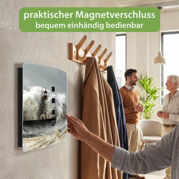 Funktion / Nutzen: Die leicht geschwungene Edelstahltür ist mit einer hochwertigen Motivfolie und dem Motiv Motiv Fels In Der Brandung kaschiert. Ein praktischer Magnetverschluss ermöglicht Ihnen ein schnelles Öffnen und Schließen. Befestigt wird der Schlüsselkasten an 2 Stellen auf der Rückseite, passendes Montagematerial fügen wir bereits bei.