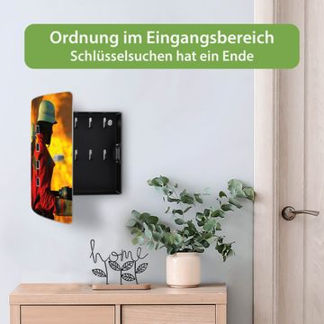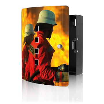 Funktion / Nutzen: Die leicht geschwungene Edelstahltür ist mit einer hochwertigen Motivfolie und dem Motiv Motiv Feuer kaschiert. Ein praktischer Magnetverschluss ermöglicht Ihnen ein schnelles Öffnen und Schließen. Befestigt wird der Schlüsselkasten an 2 Stellen auf der Rückseite, passendes Montagematerial fügen wir bereits bei.