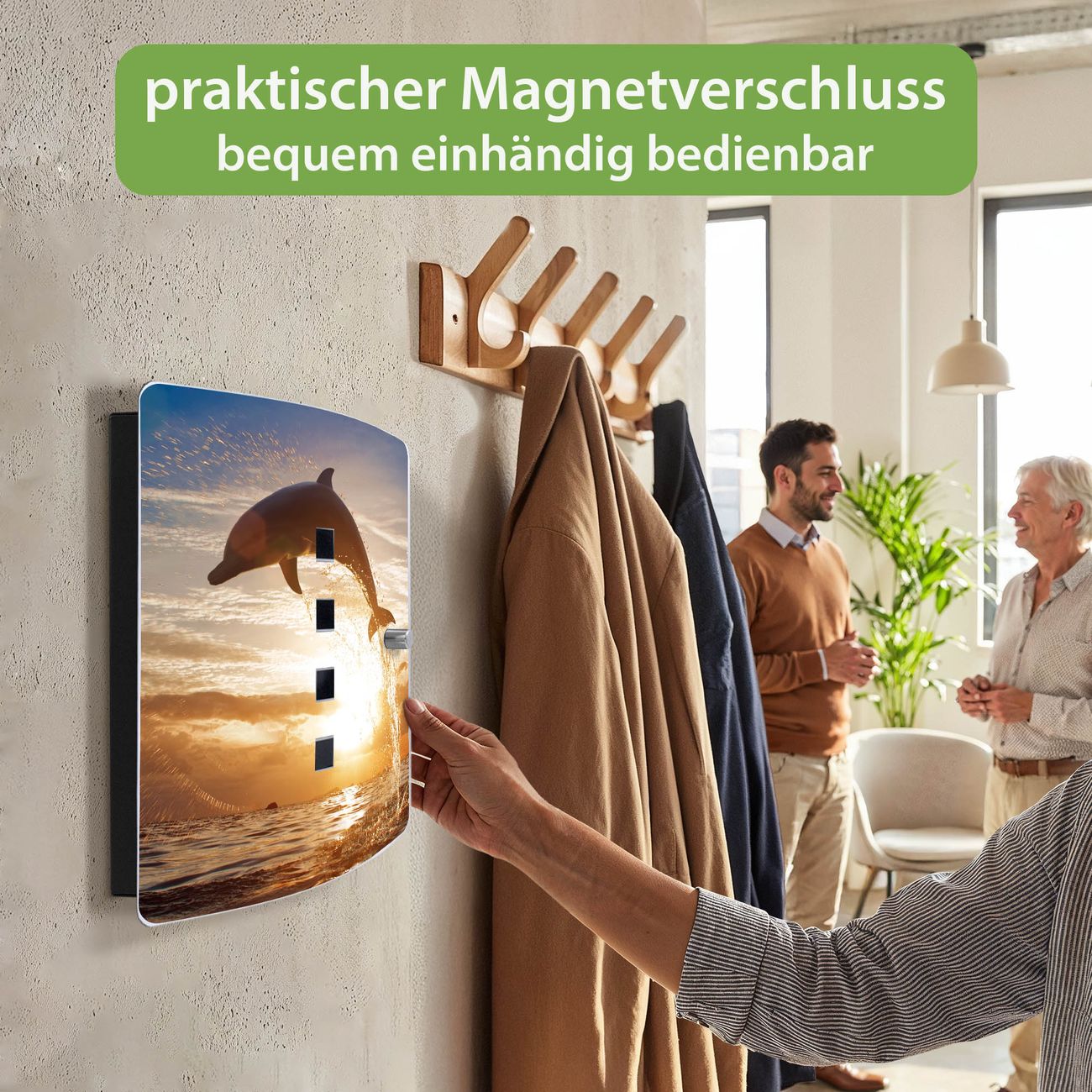 Funktion / Nutzen: Die leicht geschwungene Edelstahltür ist mit einer hochwertigen Motivfolie und dem Motiv Motiv Filippo kaschiert. Ein praktischer Magnetverschluss ermöglicht Ihnen ein schnelles Öffnen und Schließen. Befestigt wird der Schlüsselkasten an 2 Stellen auf der Rückseite, passendes Montagematerial fügen wir bereits bei.