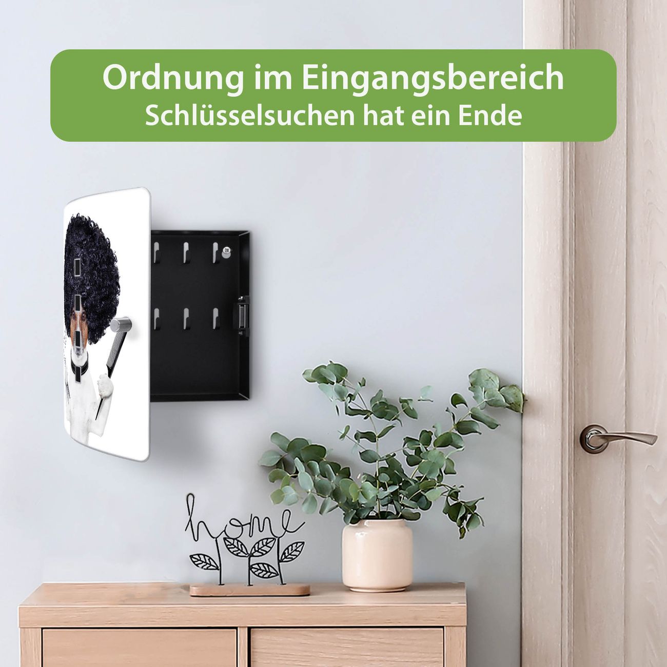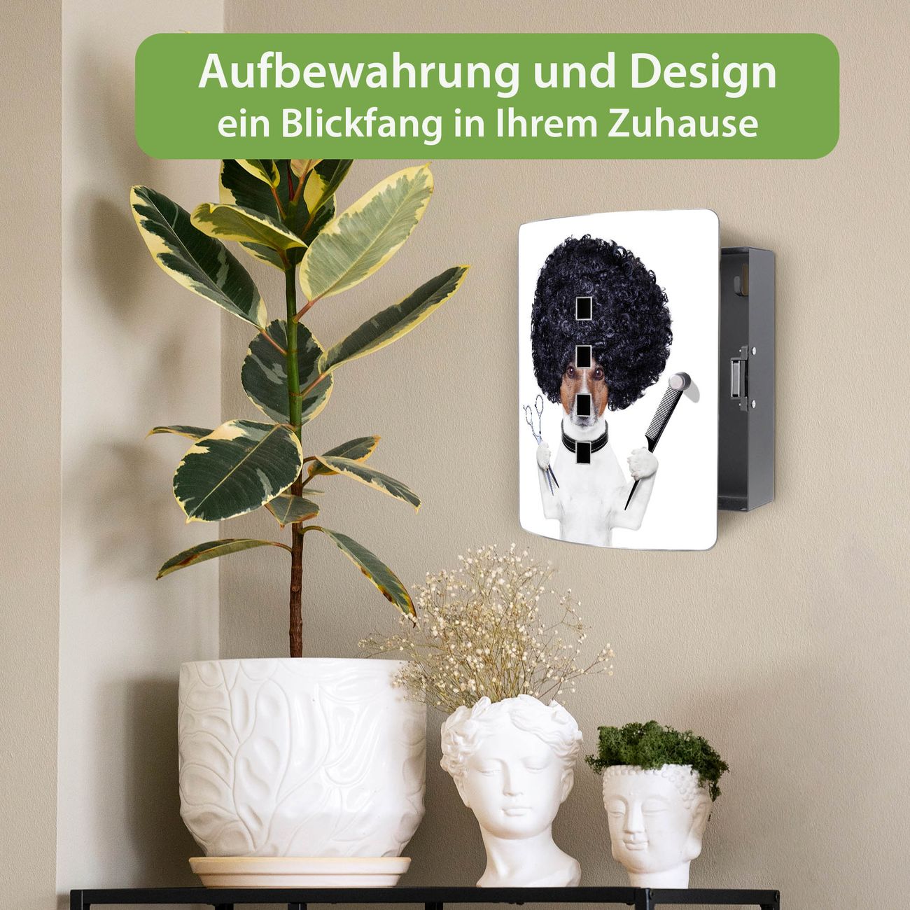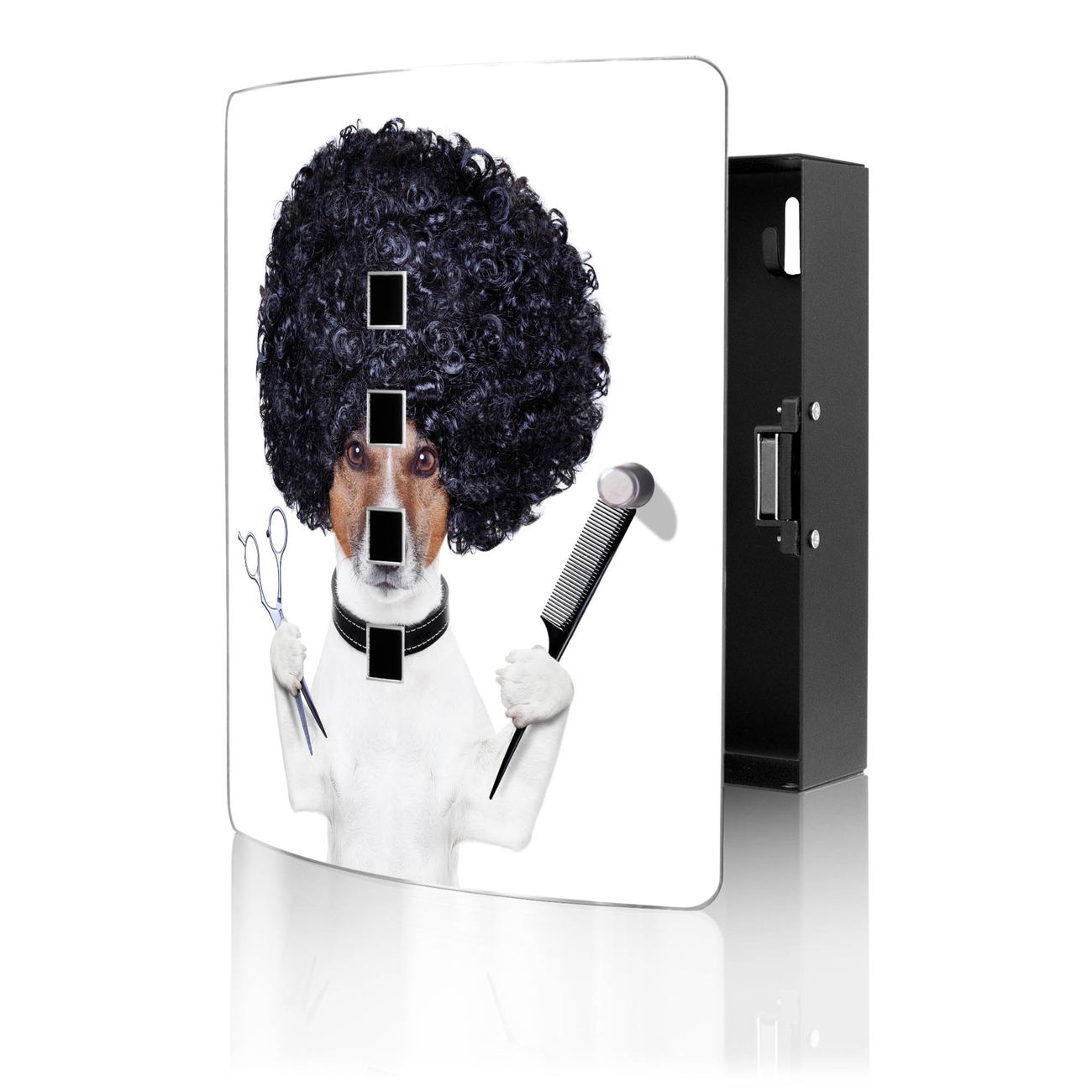 Funktion / Nutzen: Die leicht geschwungene Edelstahltür ist mit einer hochwertigen Motivfolie und dem Motiv Motiv Friseur Jack Russel kaschiert. Ein praktischer Magnetverschluss ermöglicht Ihnen ein schnelles Öffnen und Schließen. Befestigt wird der Schlüsselkasten an 2 Stellen auf der Rückseite, passendes Montagematerial fügen wir bereits bei.