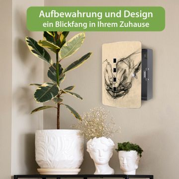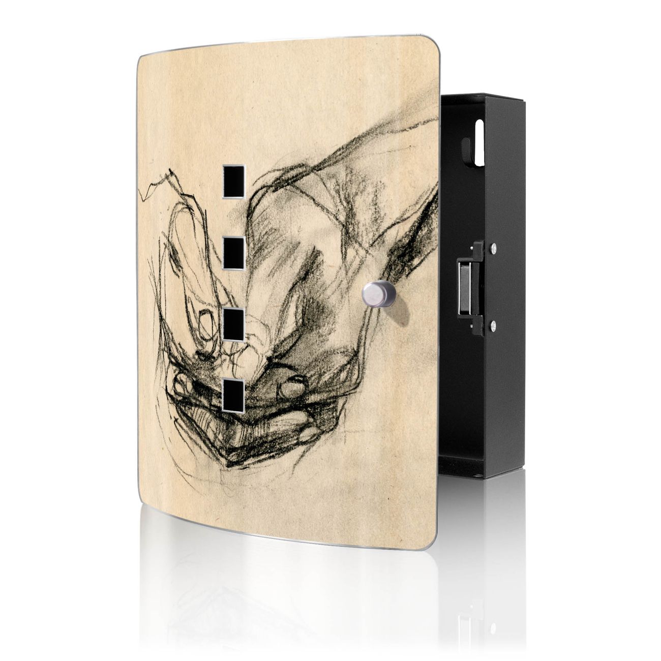 Funktion / Nutzen: Die leicht geschwungene Edelstahltür ist mit einer hochwertigen Motivfolie und dem Motiv Motiv Gefaltete Hände kaschiert. Ein praktischer Magnetverschluss ermöglicht Ihnen ein schnelles Öffnen und Schließen. Befestigt wird der Schlüsselkasten an 2 Stellen auf der Rückseite, passendes Montagematerial fügen wir bereits bei.