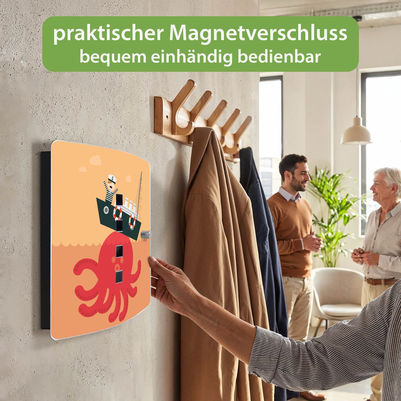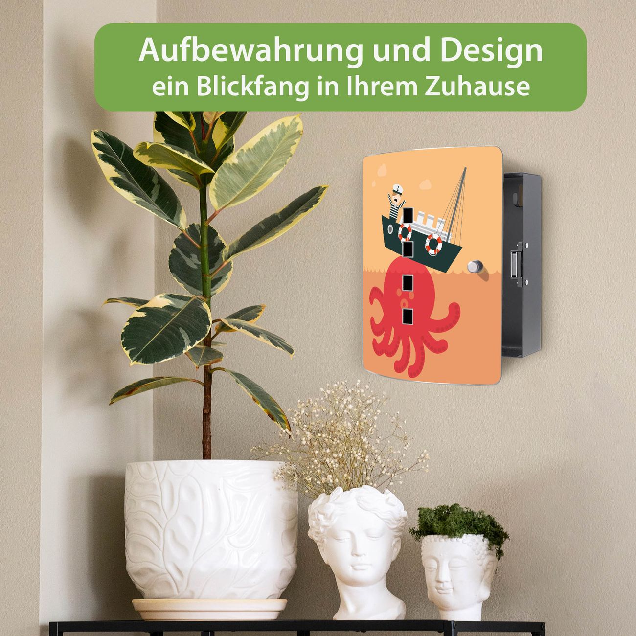 Funktion / Nutzen: Die leicht geschwungene Edelstahltür ist mit einer hochwertigen Motivfolie und dem Motiv Motiv Havarie kaschiert. Ein praktischer Magnetverschluss ermöglicht Ihnen ein schnelles Öffnen und Schließen. Befestigt wird der Schlüsselkasten an 2 Stellen auf der Rückseite, passendes Montagematerial fügen wir bereits bei.