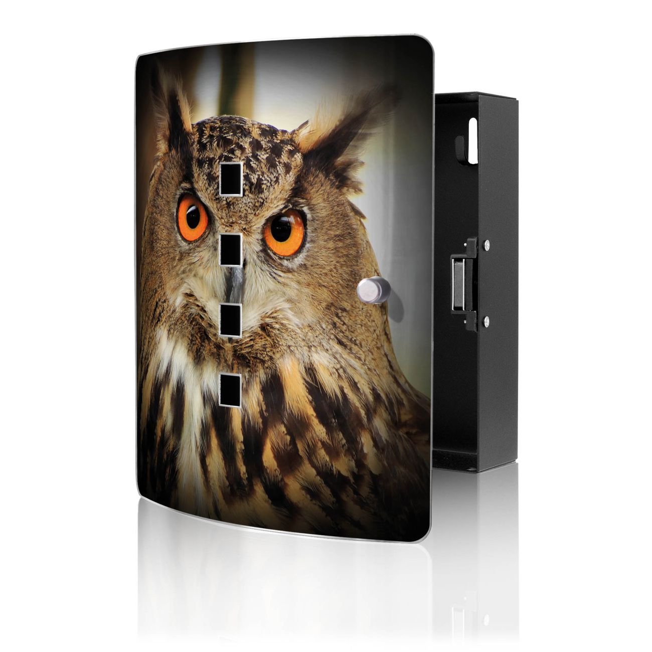Funktion / Nutzen: Die leicht geschwungene Edelstahltür ist mit einer hochwertigen Motivfolie und dem Motiv Motiv Judy kaschiert. Ein praktischer Magnetverschluss ermöglicht Ihnen ein schnelles Öffnen und Schließen. Befestigt wird der Schlüsselkasten an 2 Stellen auf der Rückseite, passendes Montagematerial fügen wir bereits bei.
