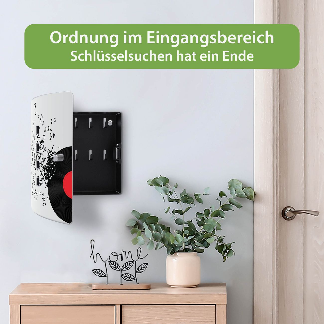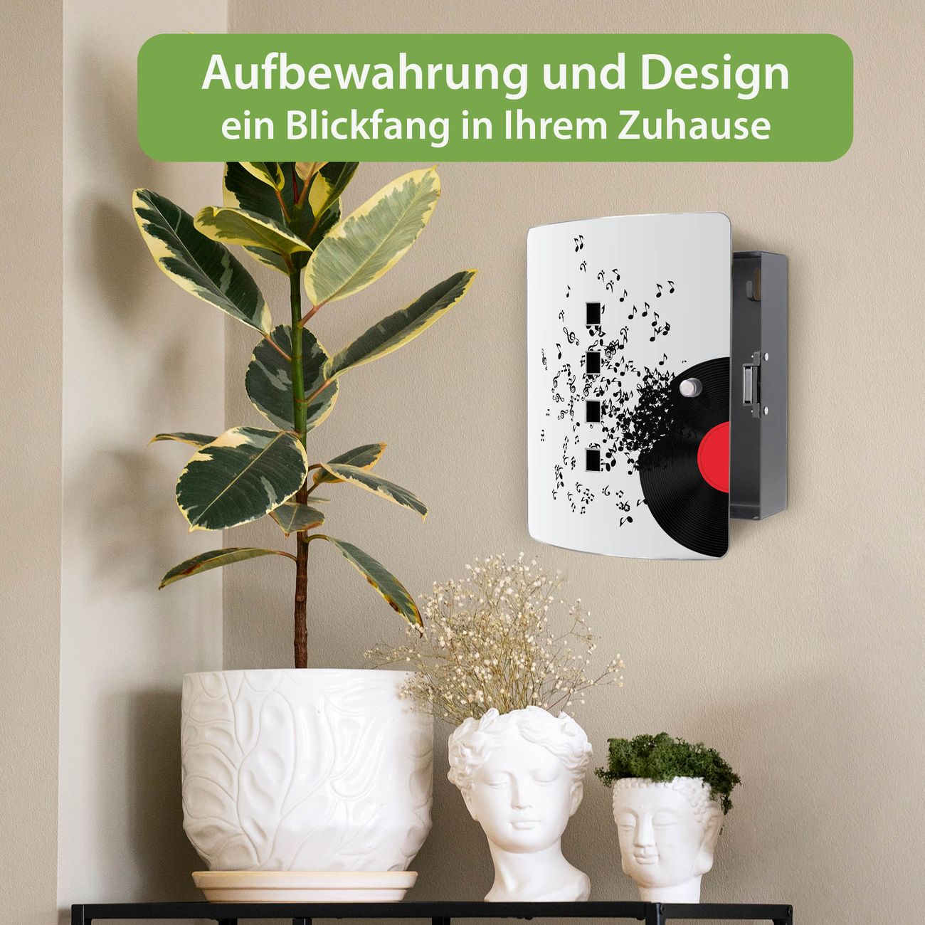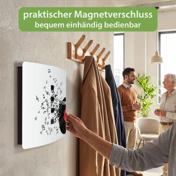 Funktion / Nutzen: Die leicht geschwungene Edelstahltür ist mit einer hochwertigen Motivfolie und dem Motiv Motiv Juke Box kaschiert. Ein praktischer Magnetverschluss ermöglicht Ihnen ein schnelles Öffnen und Schließen. Befestigt wird der Schlüsselkasten an 2 Stellen auf der Rückseite, passendes Montagematerial fügen wir bereits bei.