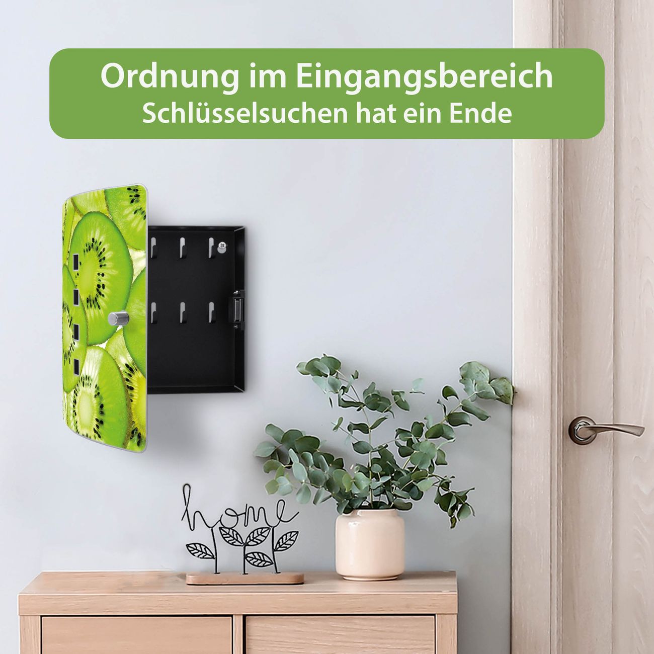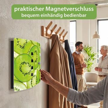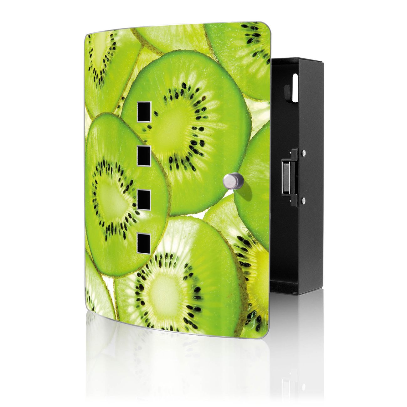 Funktion / Nutzen: Die leicht geschwungene Edelstahltür ist mit einer hochwertigen Motivfolie und dem Motiv Motiv Kiwi kaschiert. Ein praktischer Magnetverschluss ermöglicht Ihnen ein schnelles Öffnen und Schließen. Befestigt wird der Schlüsselkasten an 2 Stellen auf der Rückseite, passendes Montagematerial fügen wir bereits bei.