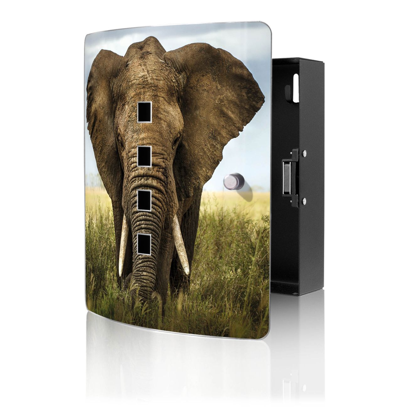 Funktion / Nutzen: Die leicht geschwungene Edelstahltür ist mit einer hochwertigen Motivfolie und dem Motiv Motiv Korbinian kaschiert. Ein praktischer Magnetverschluss ermöglicht Ihnen ein schnelles Öffnen und Schließen. Befestigt wird der Schlüsselkasten an 2 Stellen auf der Rückseite, passendes Montagematerial fügen wir bereits bei.