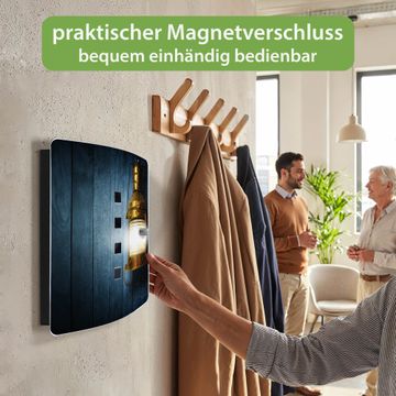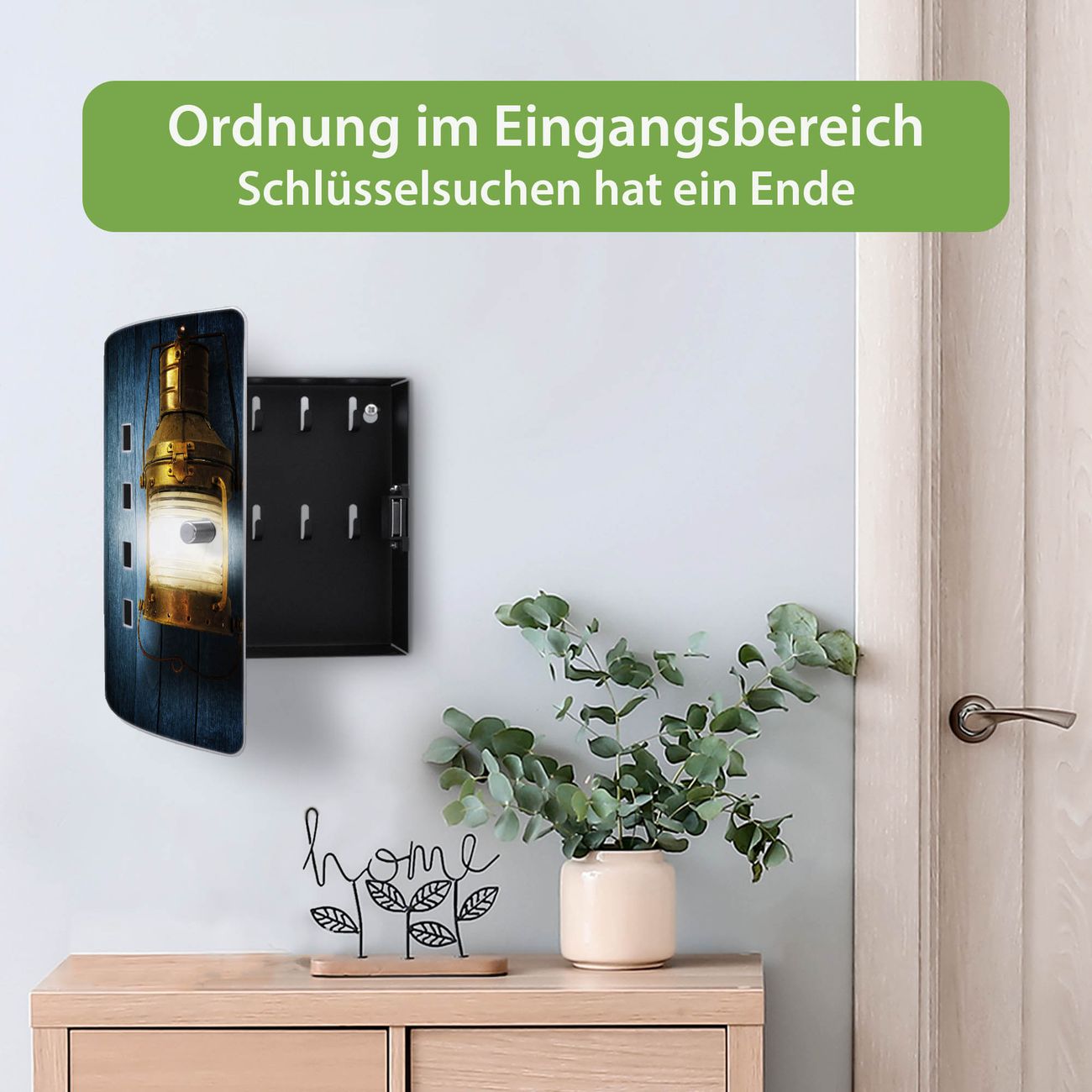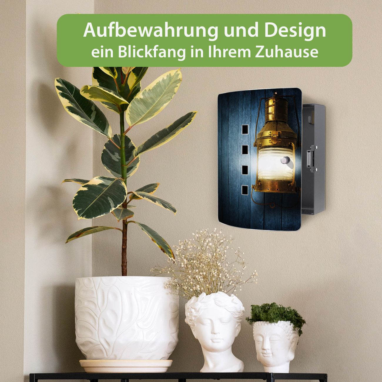 Funktion / Nutzen: Die leicht geschwungene Edelstahltür ist mit einer hochwertigen Motivfolie und dem Motiv Motiv Leuchte kaschiert. Ein praktischer Magnetverschluss ermöglicht Ihnen ein schnelles Öffnen und Schließen. Befestigt wird der Schlüsselkasten an 2 Stellen auf der Rückseite, passendes Montagematerial fügen wir bereits bei.