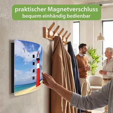 Funktion / Nutzen: Die leicht geschwungene Edelstahltür ist mit einer hochwertigen Motivfolie und dem Motiv Motiv Leuchtturm Westkapelle kaschiert. Ein praktischer Magnetverschluss ermöglicht Ihnen ein schnelles Öffnen und Schließen. Befestigt wird der Schlüsselkasten an 2 Stellen auf der Rückseite, passendes Montagematerial fügen wir bereits bei.