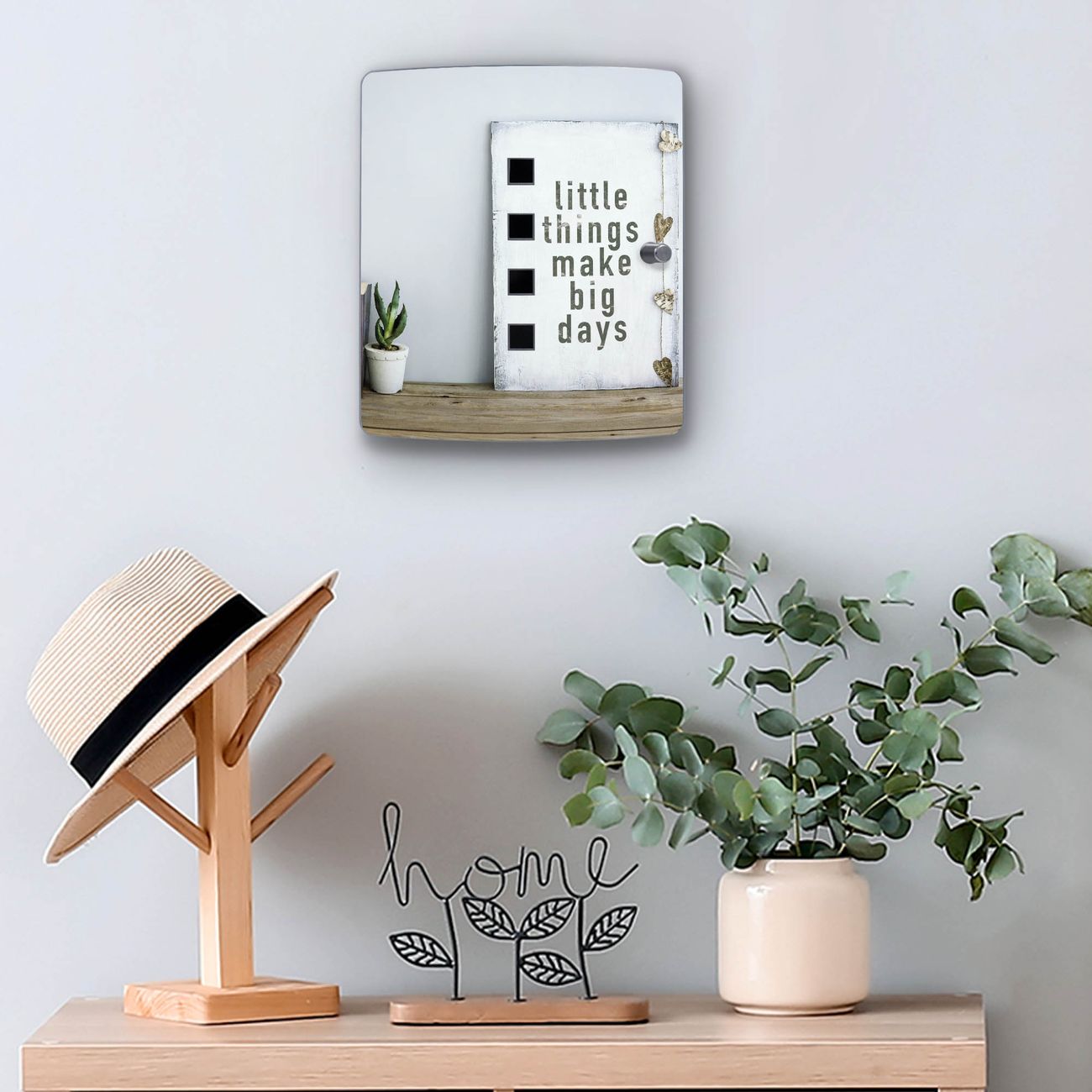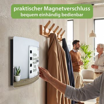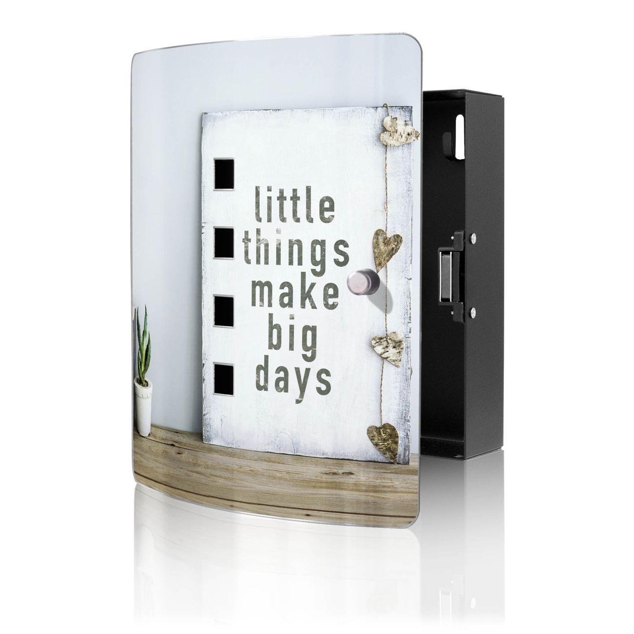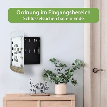 Funktion / Nutzen: Die leicht geschwungene Edelstahltür ist mit einer hochwertigen Motivfolie und dem Motiv Motiv Little Things kaschiert. Ein praktischer Magnetverschluss ermöglicht Ihnen ein schnelles Öffnen und Schließen. Befestigt wird der Schlüsselkasten an 2 Stellen auf der Rückseite, passendes Montagematerial fügen wir bereits bei.