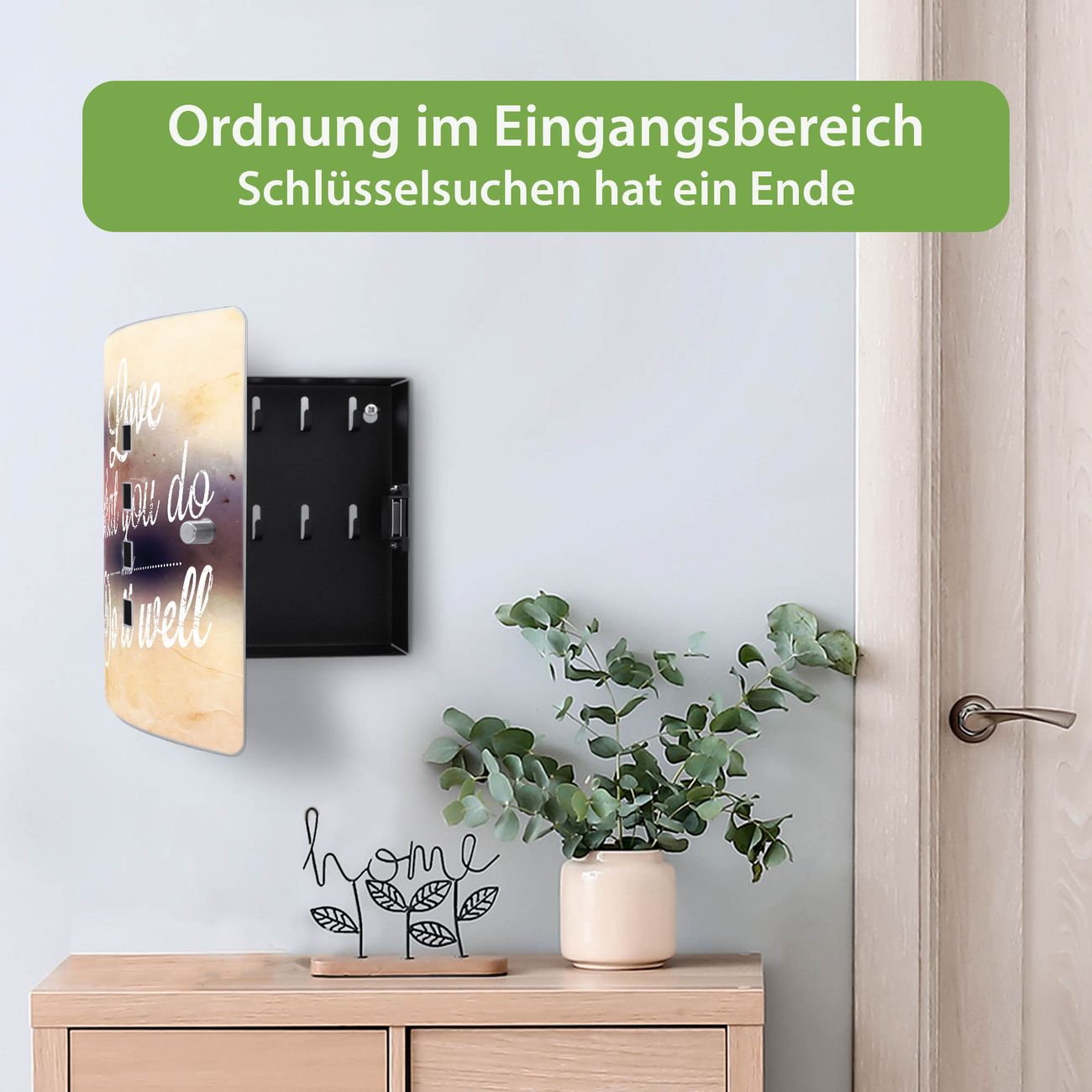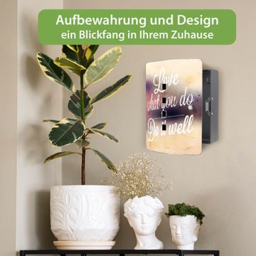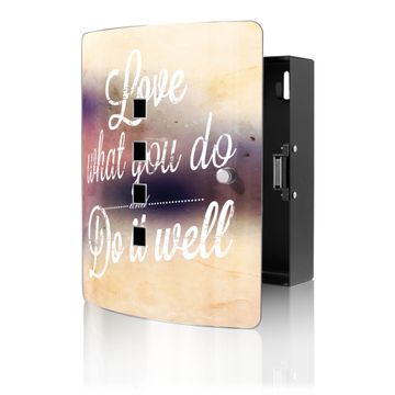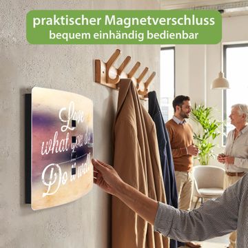 Funktion / Nutzen: Die leicht geschwungene Edelstahltür ist mit einer hochwertigen Motivfolie und dem Motiv Motiv Love What You Do kaschiert. Ein praktischer Magnetverschluss ermöglicht Ihnen ein schnelles Öffnen und Schließen. Befestigt wird der Schlüsselkasten an 2 Stellen auf der Rückseite, passendes Montagematerial fügen wir bereits bei.