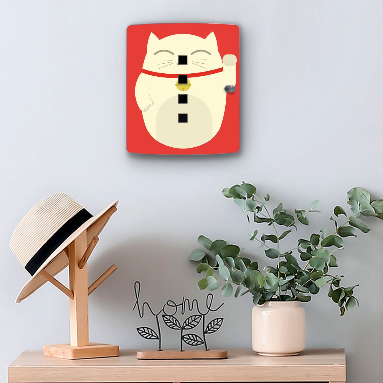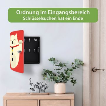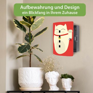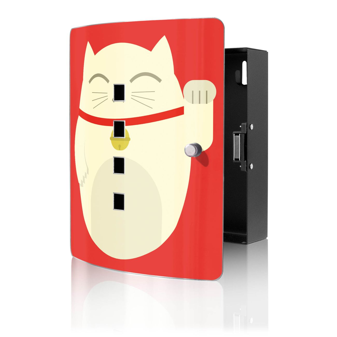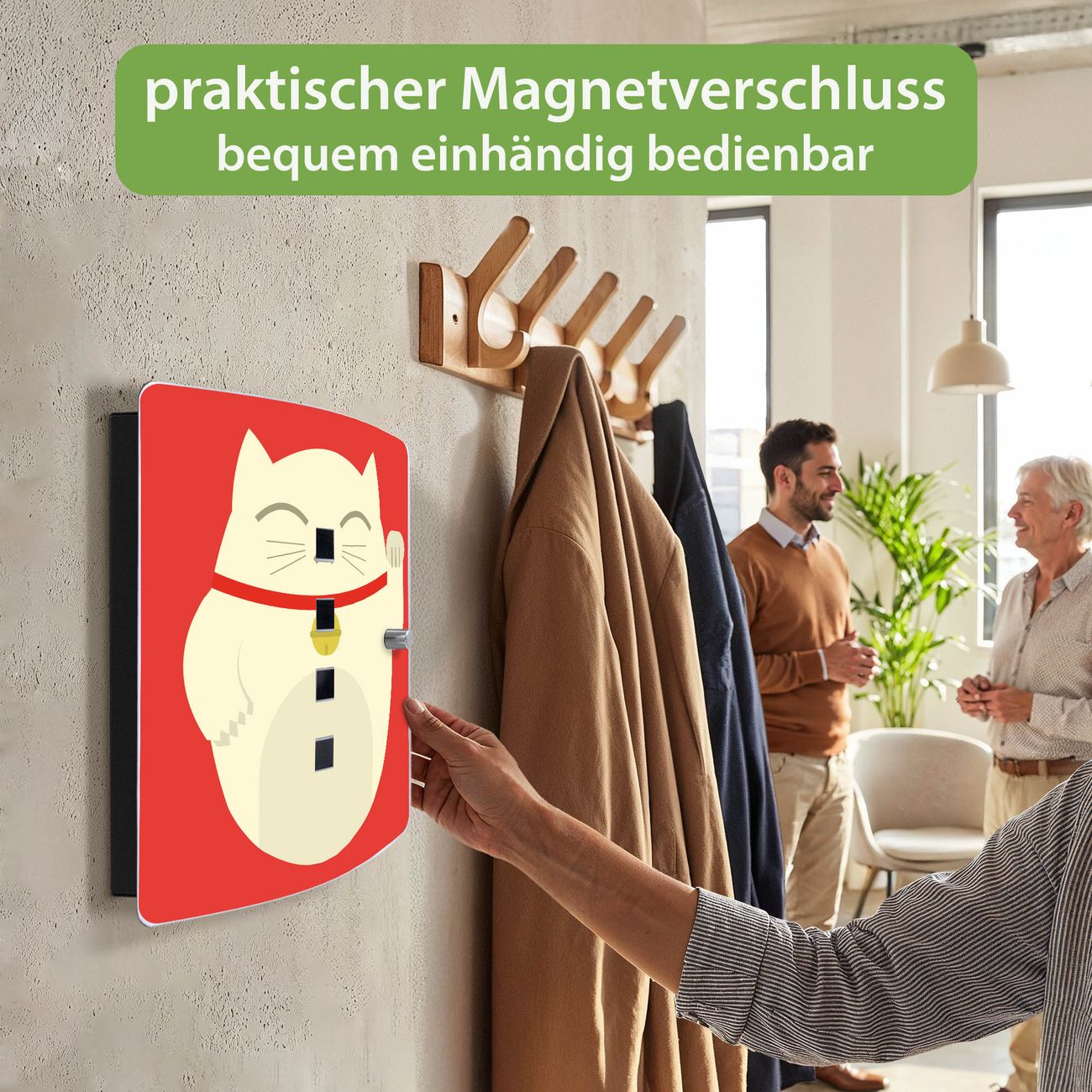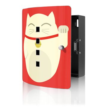 Funktion / Nutzen: Die leicht geschwungene Edelstahltür ist mit einer hochwertigen Motivfolie und dem Motiv Motiv Manekineko kaschiert. Ein praktischer Magnetverschluss ermöglicht Ihnen ein schnelles Öffnen und Schließen. Befestigt wird der Schlüsselkasten an 2 Stellen auf der Rückseite, passendes Montagematerial fügen wir bereits bei.