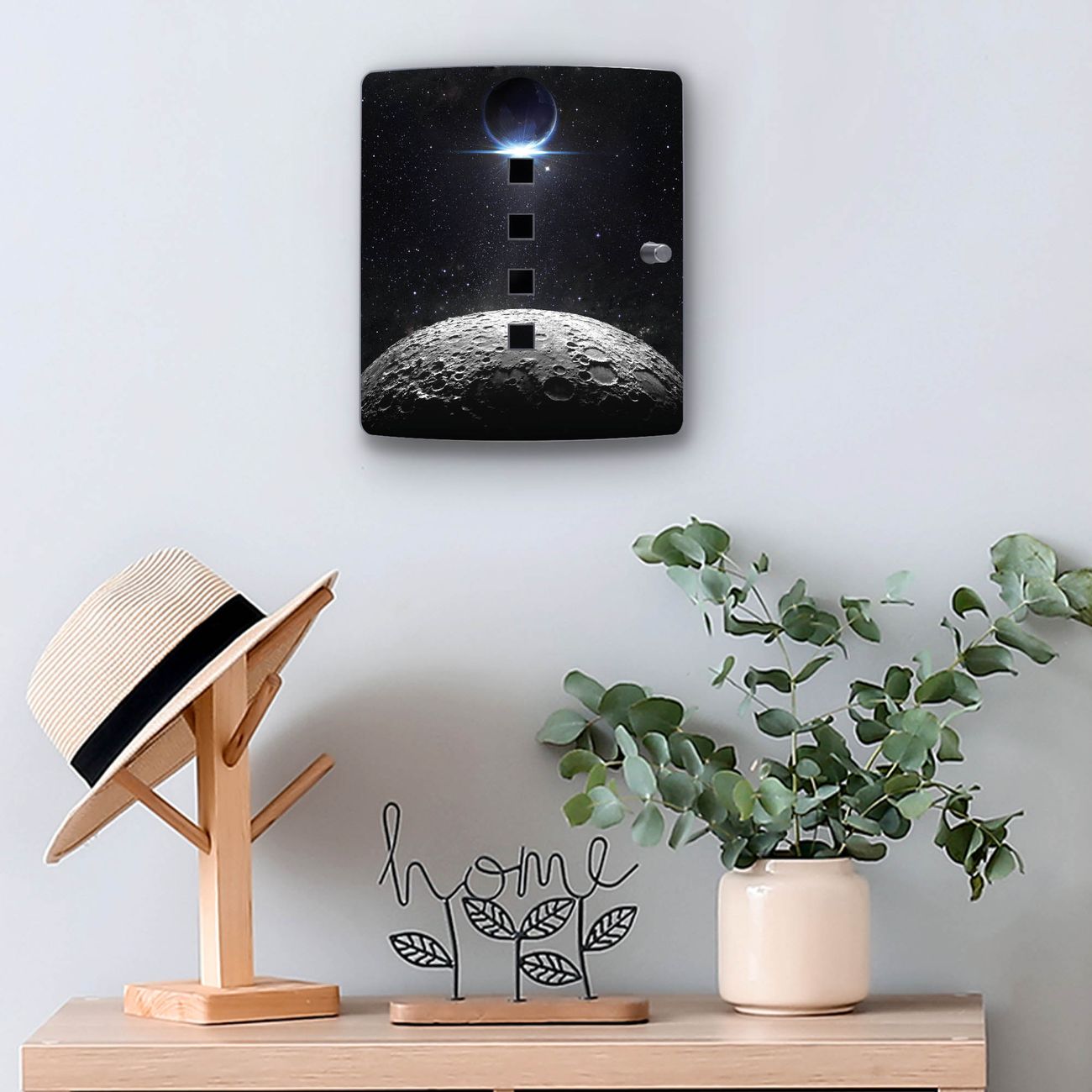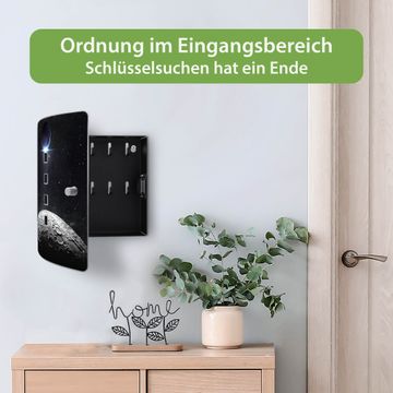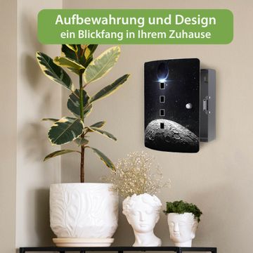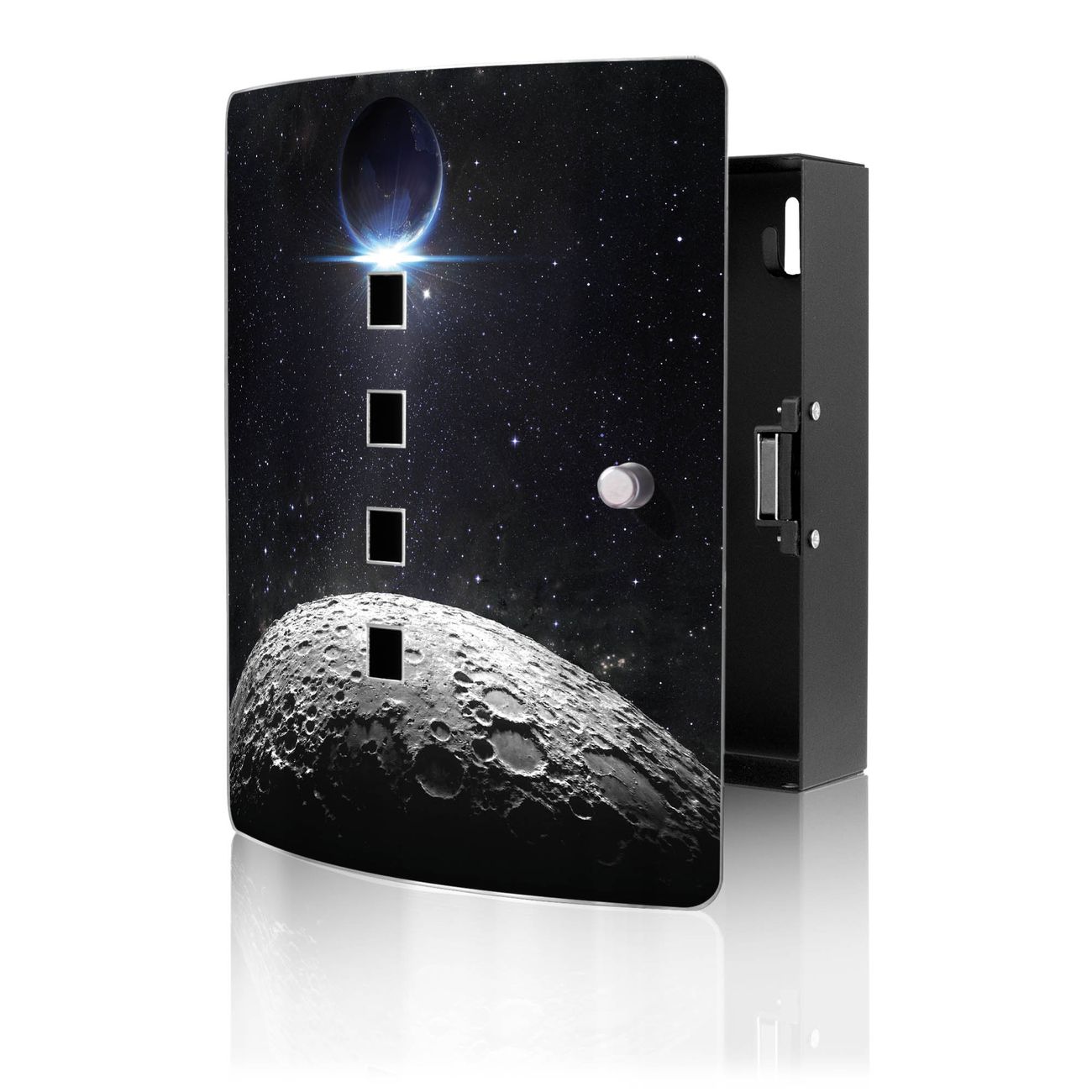 Funktion / Nutzen: Die leicht geschwungene Edelstahltür ist mit einer hochwertigen Motivfolie und dem Motiv Motiv Mondlandschaft kaschiert. Ein praktischer Magnetverschluss ermöglicht Ihnen ein schnelles Öffnen und Schließen. Befestigt wird der Schlüsselkasten an 2 Stellen auf der Rückseite, passendes Montagematerial fügen wir bereits bei.