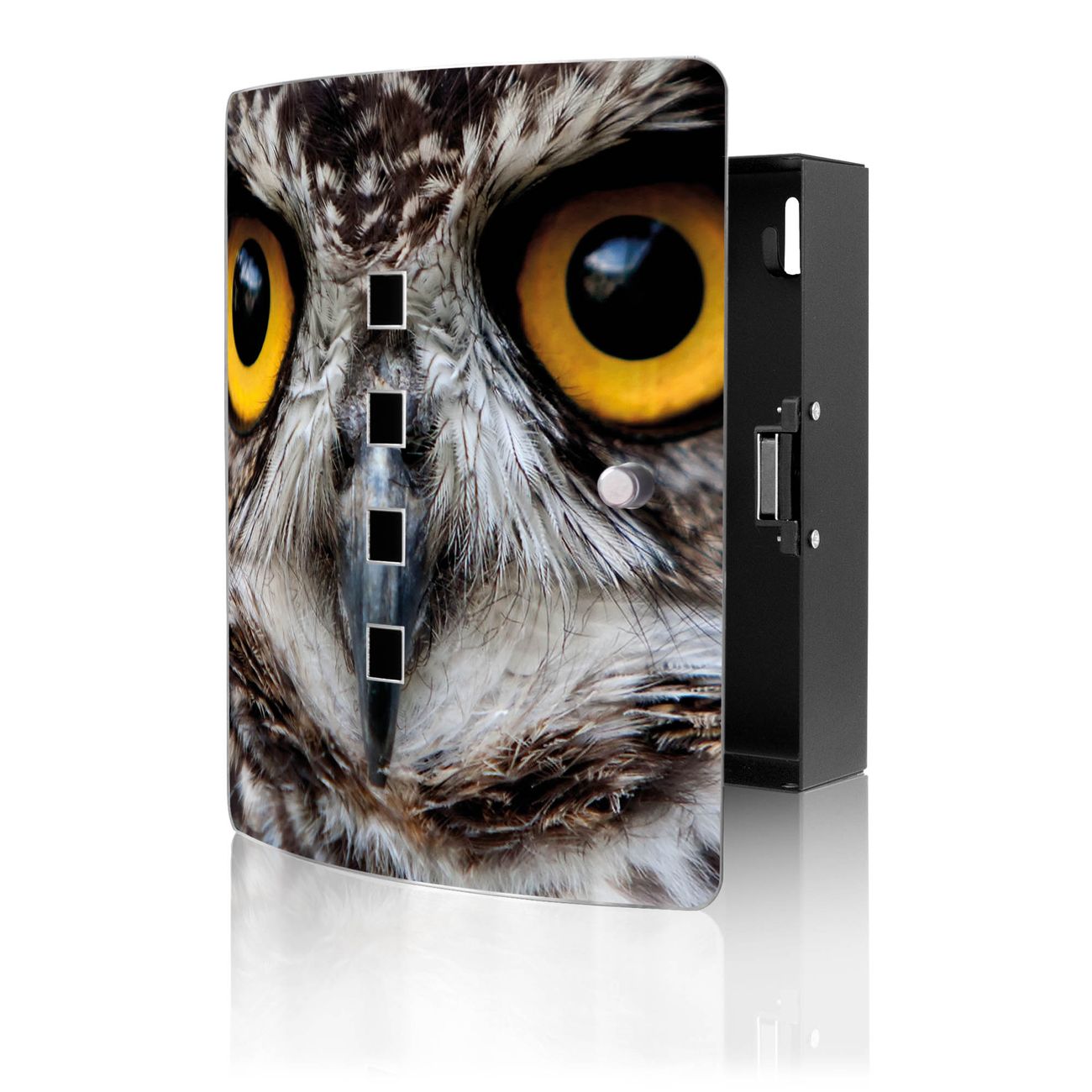 Funktion / Nutzen: Die leicht geschwungene Edelstahltür ist mit einer hochwertigen Motivfolie und dem Motiv Motiv Monique kaschiert. Ein praktischer Magnetverschluss ermöglicht Ihnen ein schnelles Öffnen und Schließen. Befestigt wird der Schlüsselkasten an 2 Stellen auf der Rückseite, passendes Montagematerial fügen wir bereits bei.