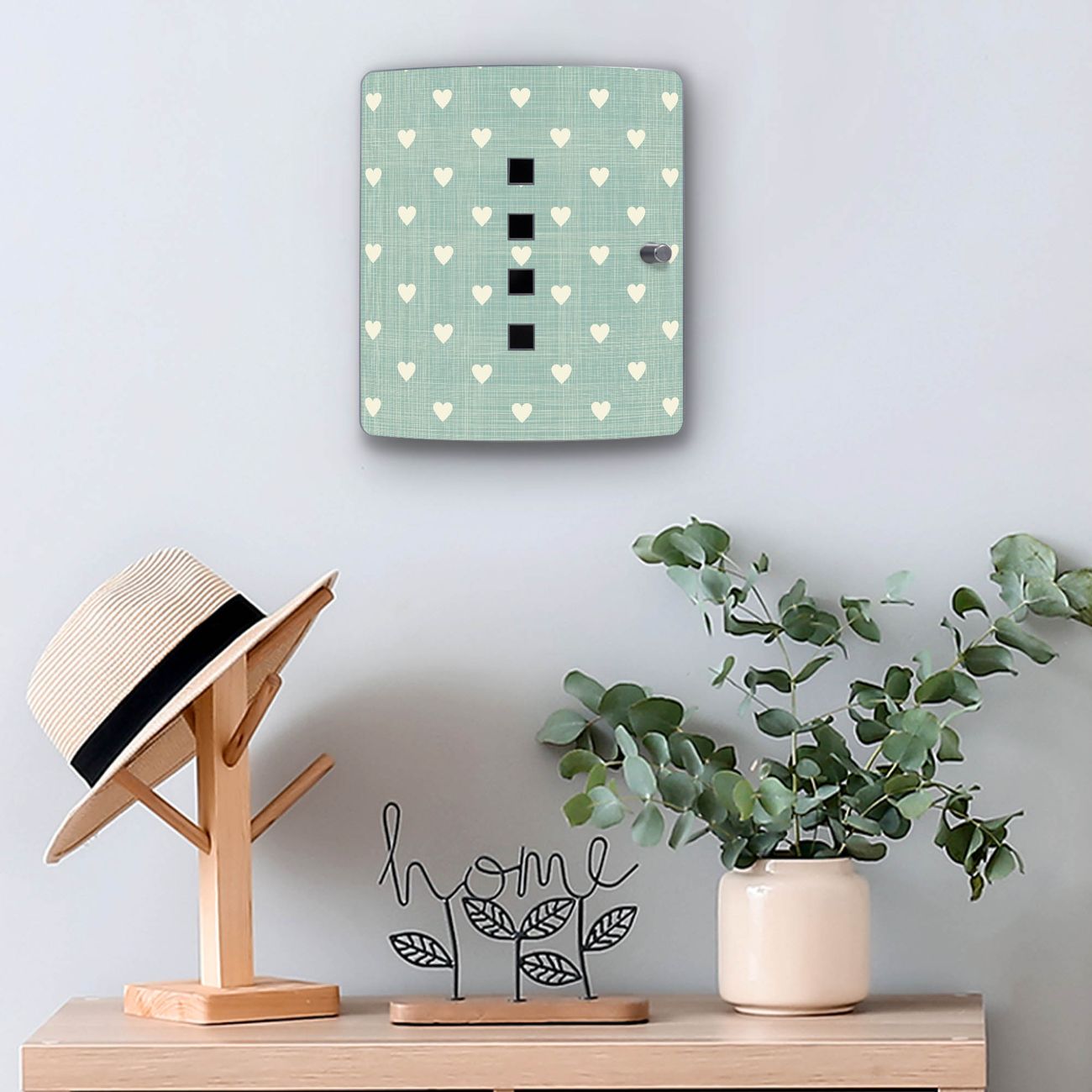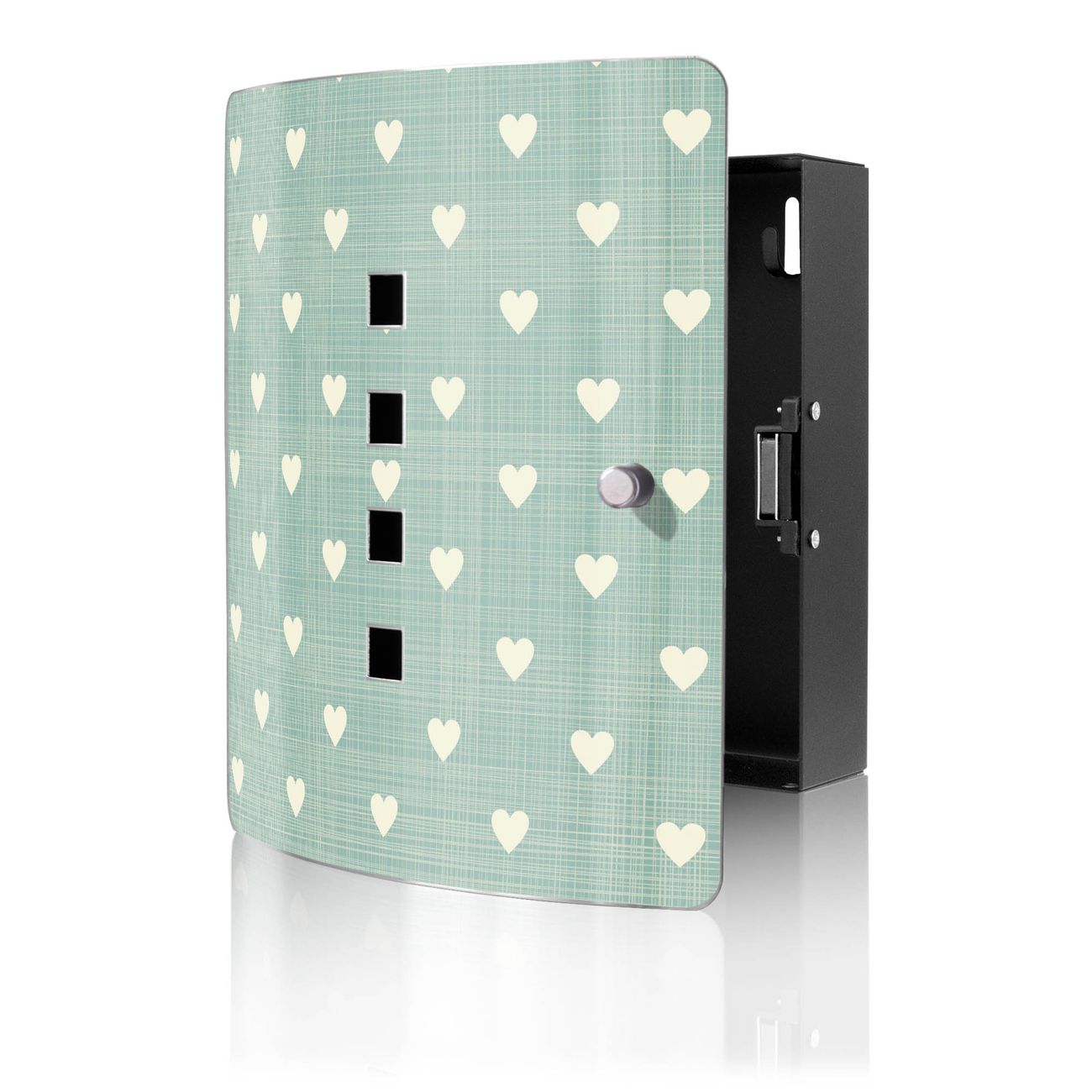 Funktion / Nutzen: Die leicht geschwungene Edelstahltür ist mit einer hochwertigen Motivfolie und dem Motiv Motiv Muster Herzen kaschiert. Ein praktischer Magnetverschluss ermöglicht Ihnen ein schnelles Öffnen und Schließen. Befestigt wird der Schlüsselkasten an 2 Stellen auf der Rückseite, passendes Montagematerial fügen wir bereits bei.