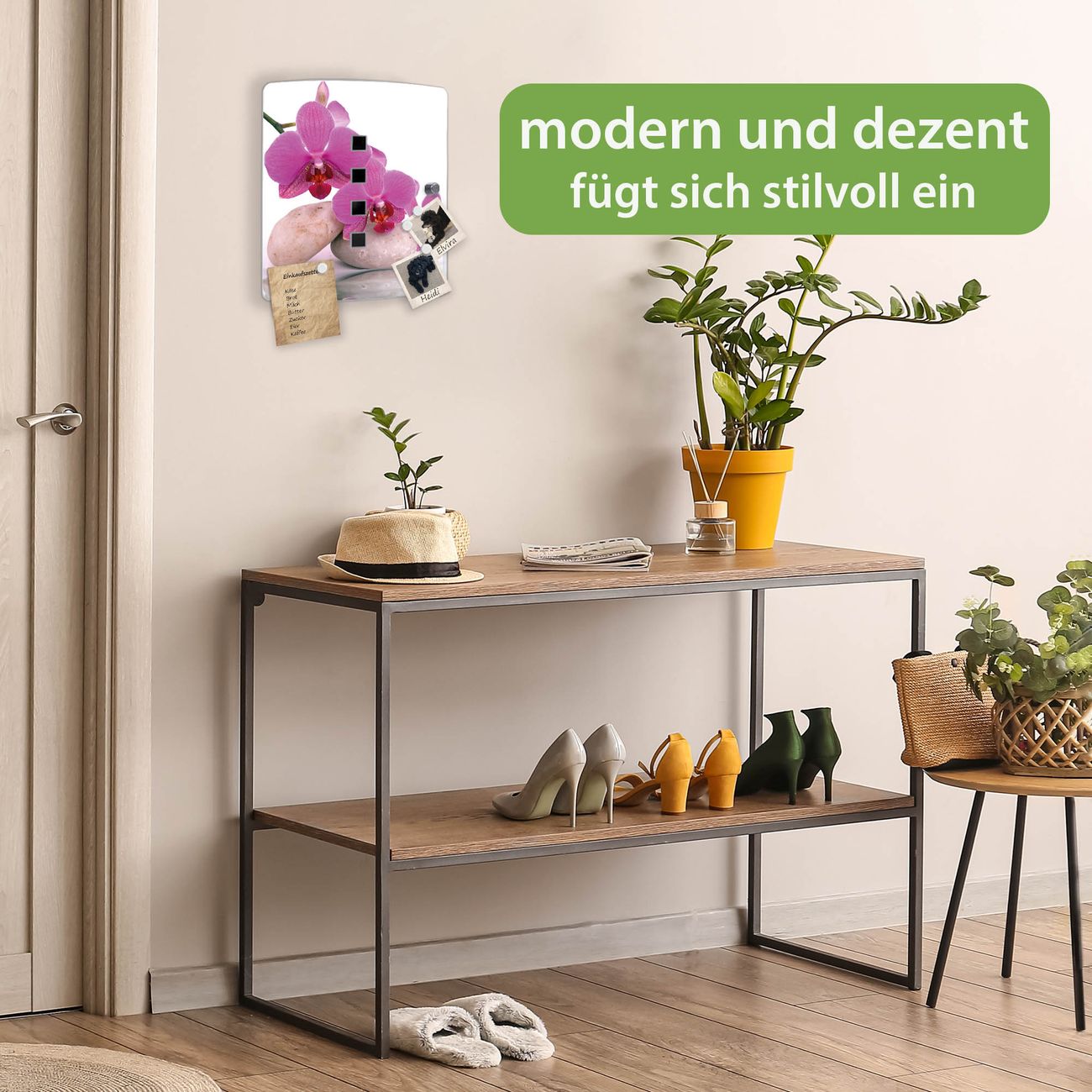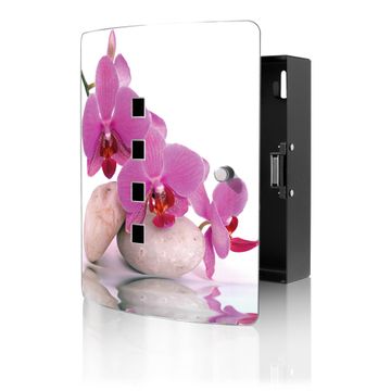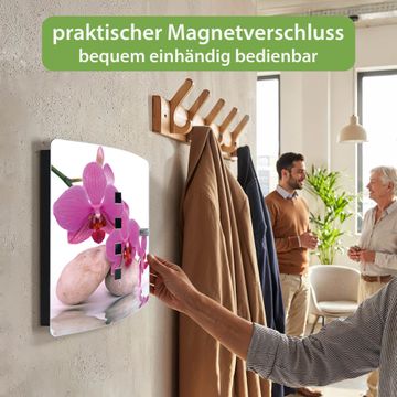 Funktion / Nutzen: Die leicht geschwungene Edelstahltür ist mit einer hochwertigen Motivfolie und dem Motiv Motiv Orchidee kaschiert. Ein praktischer Magnetverschluss ermöglicht Ihnen ein schnelles Öffnen und Schließen. Befestigt wird der Schlüsselkasten an 2 Stellen auf der Rückseite, passendes Montagematerial fügen wir bereits bei.