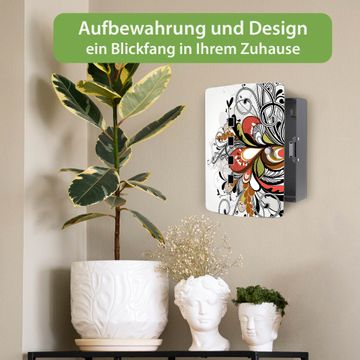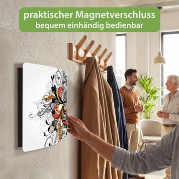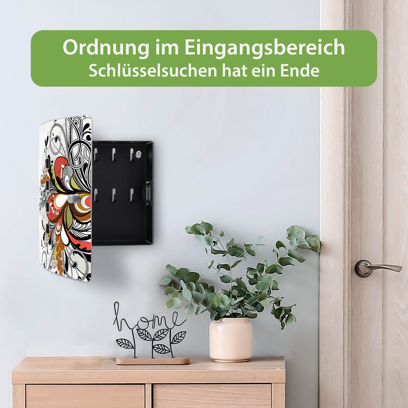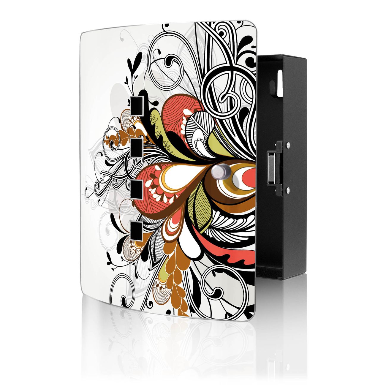 Funktion / Nutzen: Die leicht geschwungene Edelstahltür ist mit einer hochwertigen Motivfolie und dem Motiv Motiv Ornament 2 kaschiert. Ein praktischer Magnetverschluss ermöglicht Ihnen ein schnelles Öffnen und Schließen. Befestigt wird der Schlüsselkasten an 2 Stellen auf der Rückseite, passendes Montagematerial fügen wir bereits bei.