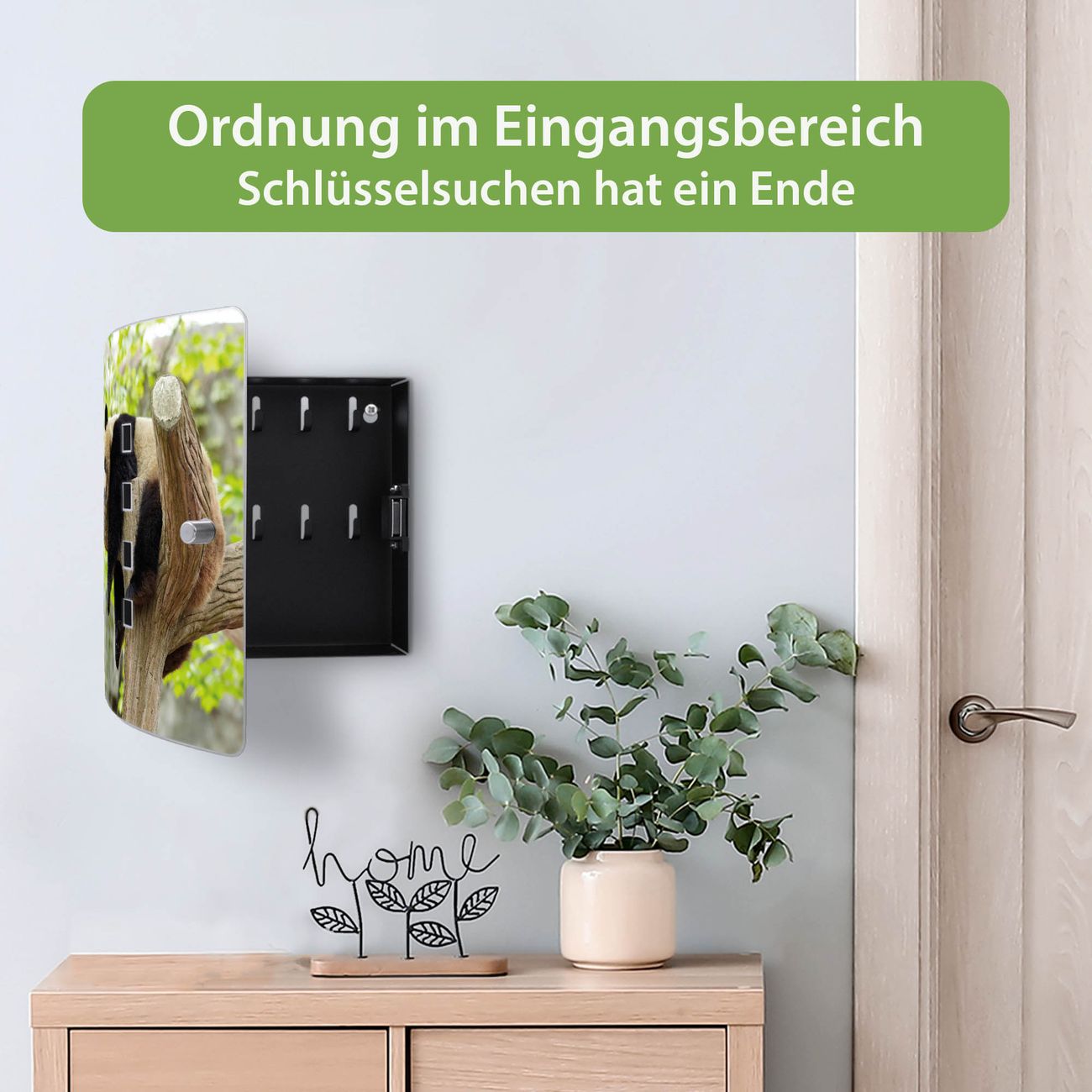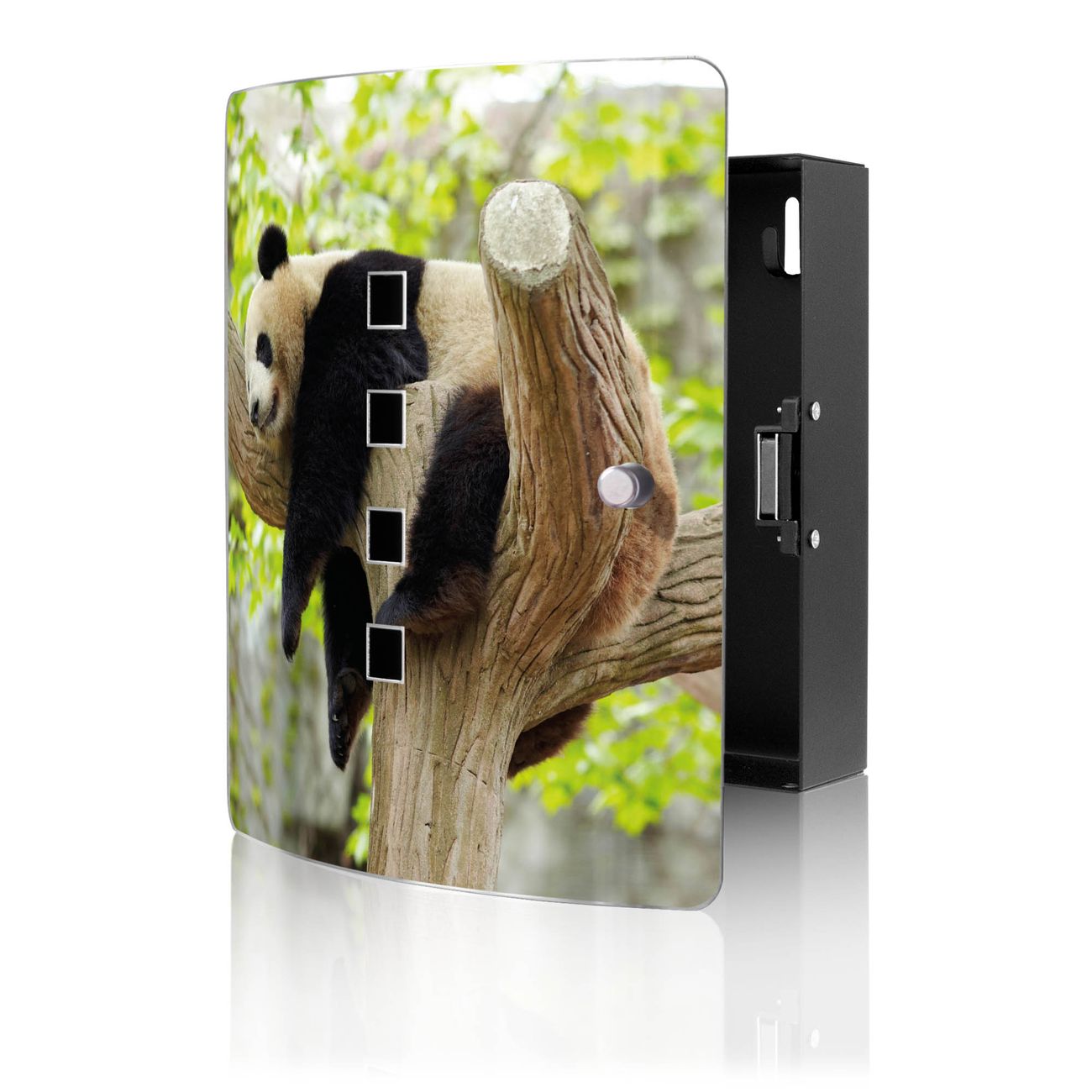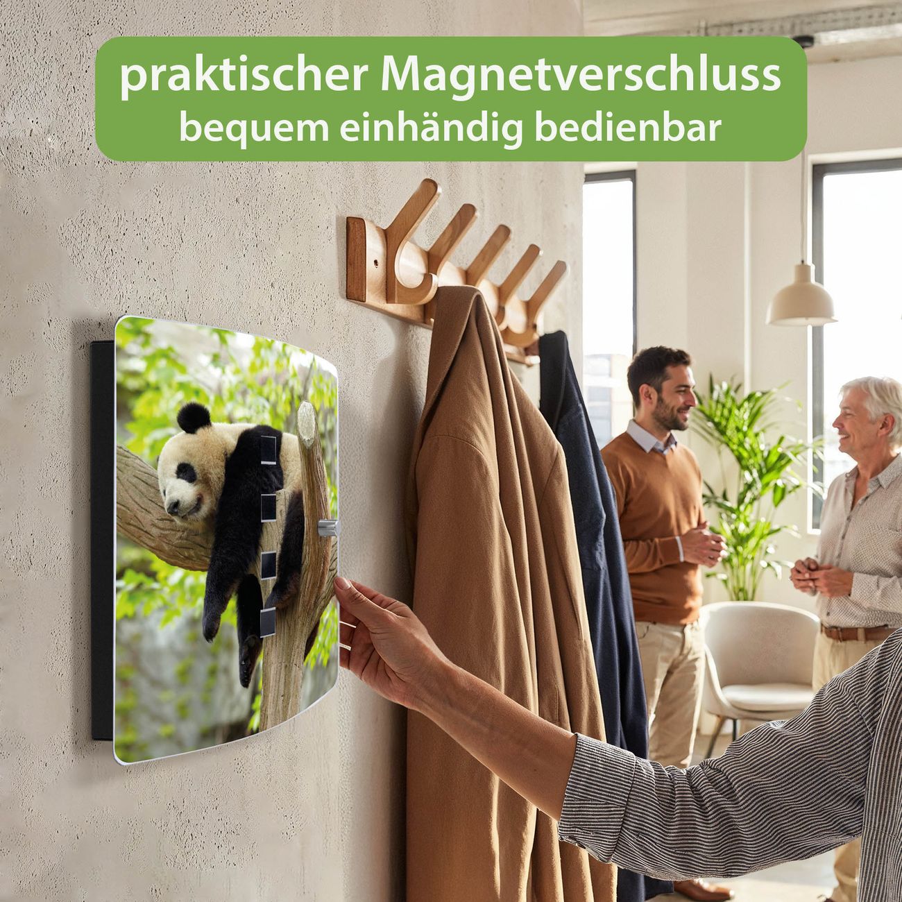 Funktion / Nutzen: Die leicht geschwungene Edelstahltür ist mit einer hochwertigen Motivfolie und dem Motiv Motiv Panda kaschiert. Ein praktischer Magnetverschluss ermöglicht Ihnen ein schnelles Öffnen und Schließen. Befestigt wird der Schlüsselkasten an 2 Stellen auf der Rückseite, passendes Montagematerial fügen wir bereits bei.