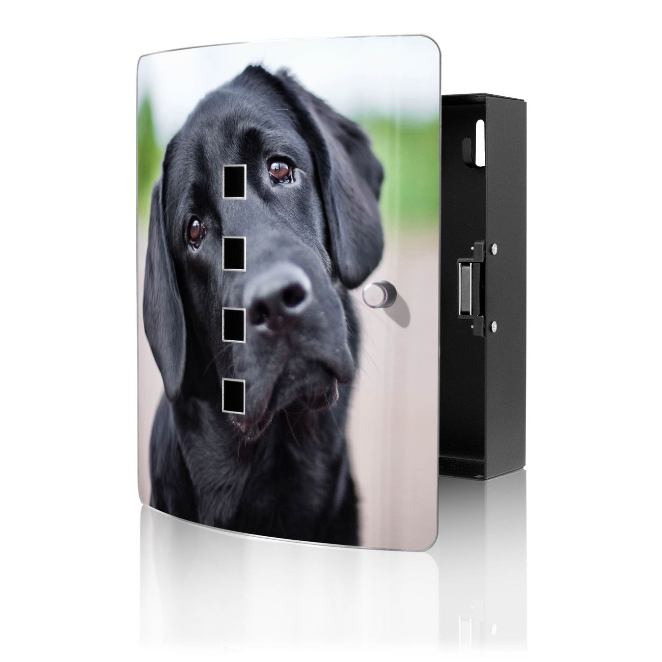 Funktion / Nutzen: Die leicht geschwungene Edelstahltür ist mit einer hochwertigen Motivfolie und dem Motiv Motiv Paolo kaschiert. Ein praktischer Magnetverschluss ermöglicht Ihnen ein schnelles Öffnen und Schließen. Befestigt wird der Schlüsselkasten an 2 Stellen auf der Rückseite, passendes Montagematerial fügen wir bereits bei.