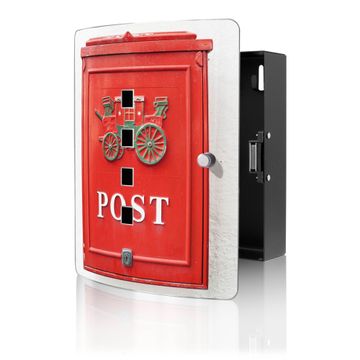 Funktion / Nutzen: Die leicht geschwungene Edelstahltür ist mit einer hochwertigen Motivfolie und dem Motiv Motiv Postkasten Nostalgie kaschiert. Ein praktischer Magnetverschluss ermöglicht Ihnen ein schnelles Öffnen und Schließen. Befestigt wird der Schlüsselkasten an 2 Stellen auf der Rückseite, passendes Montagematerial fügen wir bereits bei.