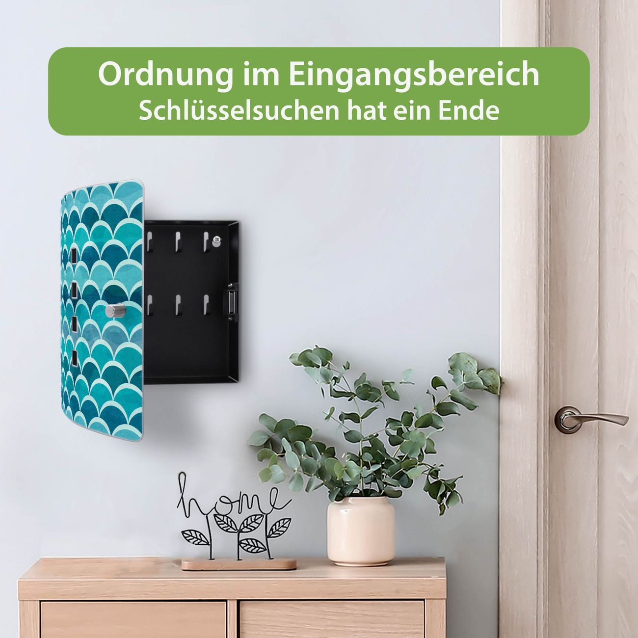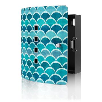 Funktion / Nutzen: Die leicht geschwungene Edelstahltür ist mit einer hochwertigen Motivfolie und dem Motiv Motiv Raue See kaschiert. Ein praktischer Magnetverschluss ermöglicht Ihnen ein schnelles Öffnen und Schließen. Befestigt wird der Schlüsselkasten an 2 Stellen auf der Rückseite, passendes Montagematerial fügen wir bereits bei.