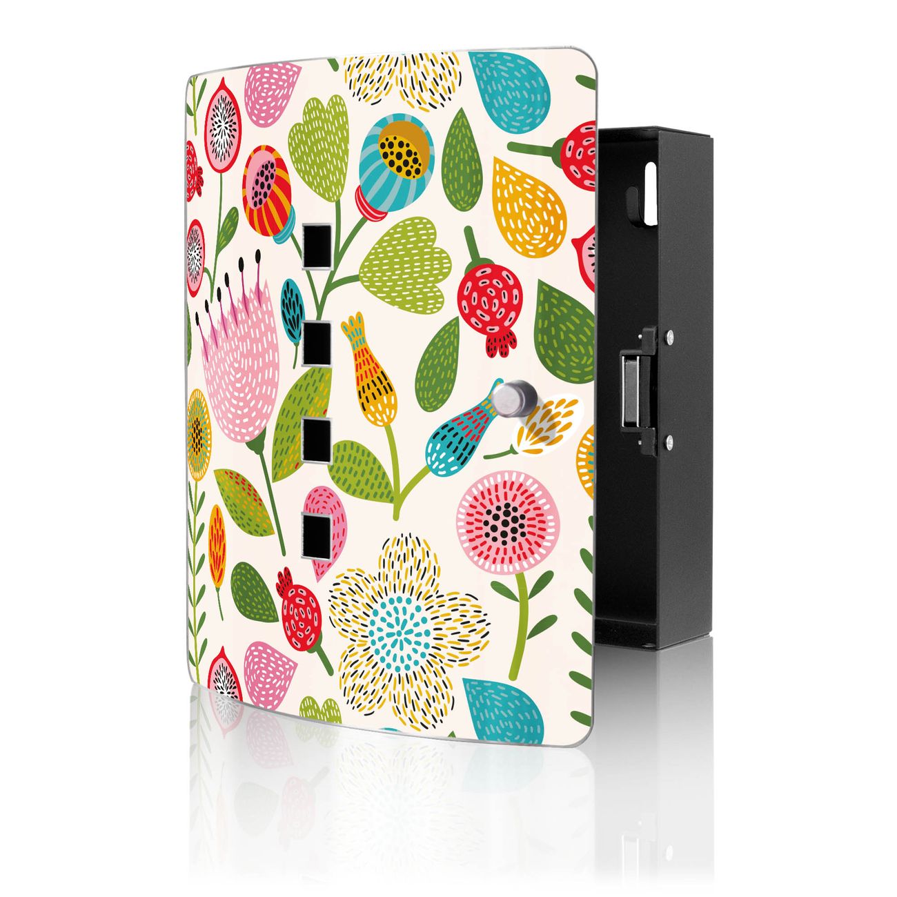 Funktion / Nutzen: Die leicht geschwungene Edelstahltür ist mit einer hochwertigen Motivfolie und dem Motiv Motiv Rosa Kelch Hell kaschiert. Ein praktischer Magnetverschluss ermöglicht Ihnen ein schnelles Öffnen und Schließen. Befestigt wird der Schlüsselkasten an 2 Stellen auf der Rückseite, passendes Montagematerial fügen wir bereits bei.