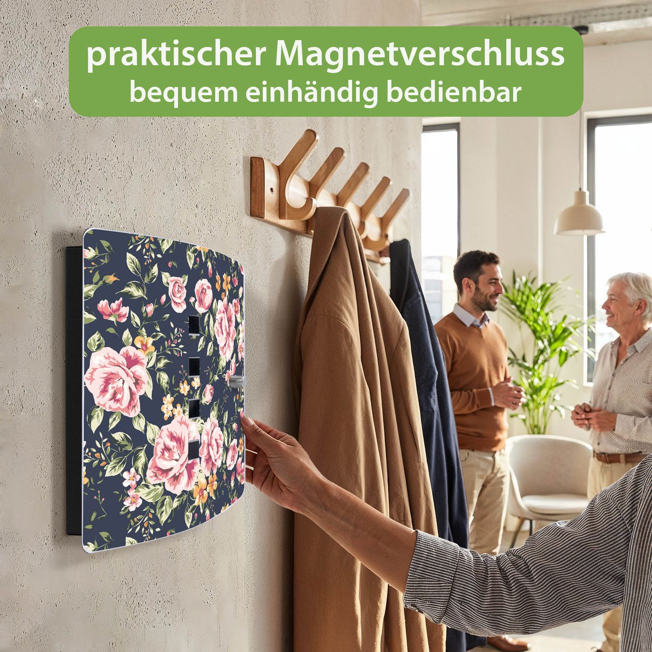 Schlüsselkasten Motiv Rosen Auf Anthrazit