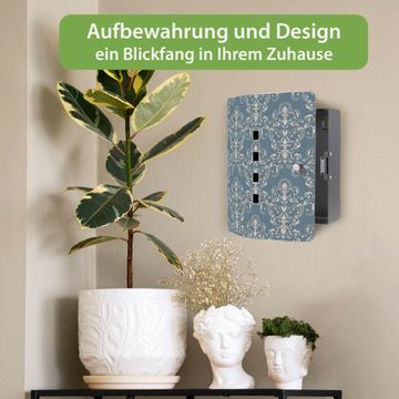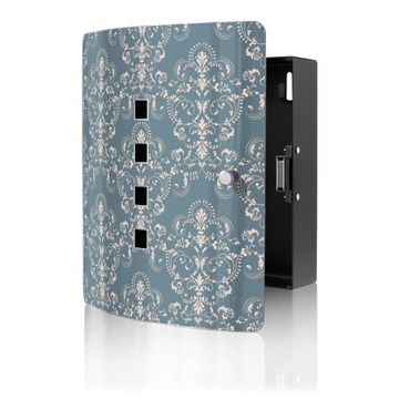 Funktion / Nutzen: Die leicht geschwungene Edelstahltür ist mit einer hochwertigen Motivfolie und dem Motiv Motiv Royal Creme Blau kaschiert. Ein praktischer Magnetverschluss ermöglicht Ihnen ein schnelles Öffnen und Schließen. Befestigt wird der Schlüsselkasten an 2 Stellen auf der Rückseite, passendes Montagematerial fügen wir bereits bei.