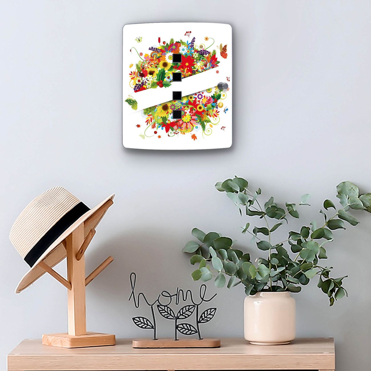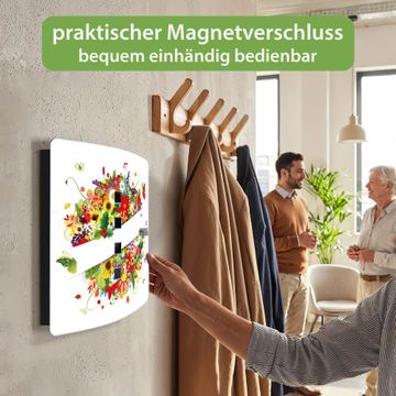 Funktion / Nutzen: Die leicht geschwungene Edelstahltür ist mit einer hochwertigen Motivfolie und dem Motiv Motiv Sommer kaschiert. Ein praktischer Magnetverschluss ermöglicht Ihnen ein schnelles Öffnen und Schließen. Befestigt wird der Schlüsselkasten an 2 Stellen auf der Rückseite, passendes Montagematerial fügen wir bereits bei.