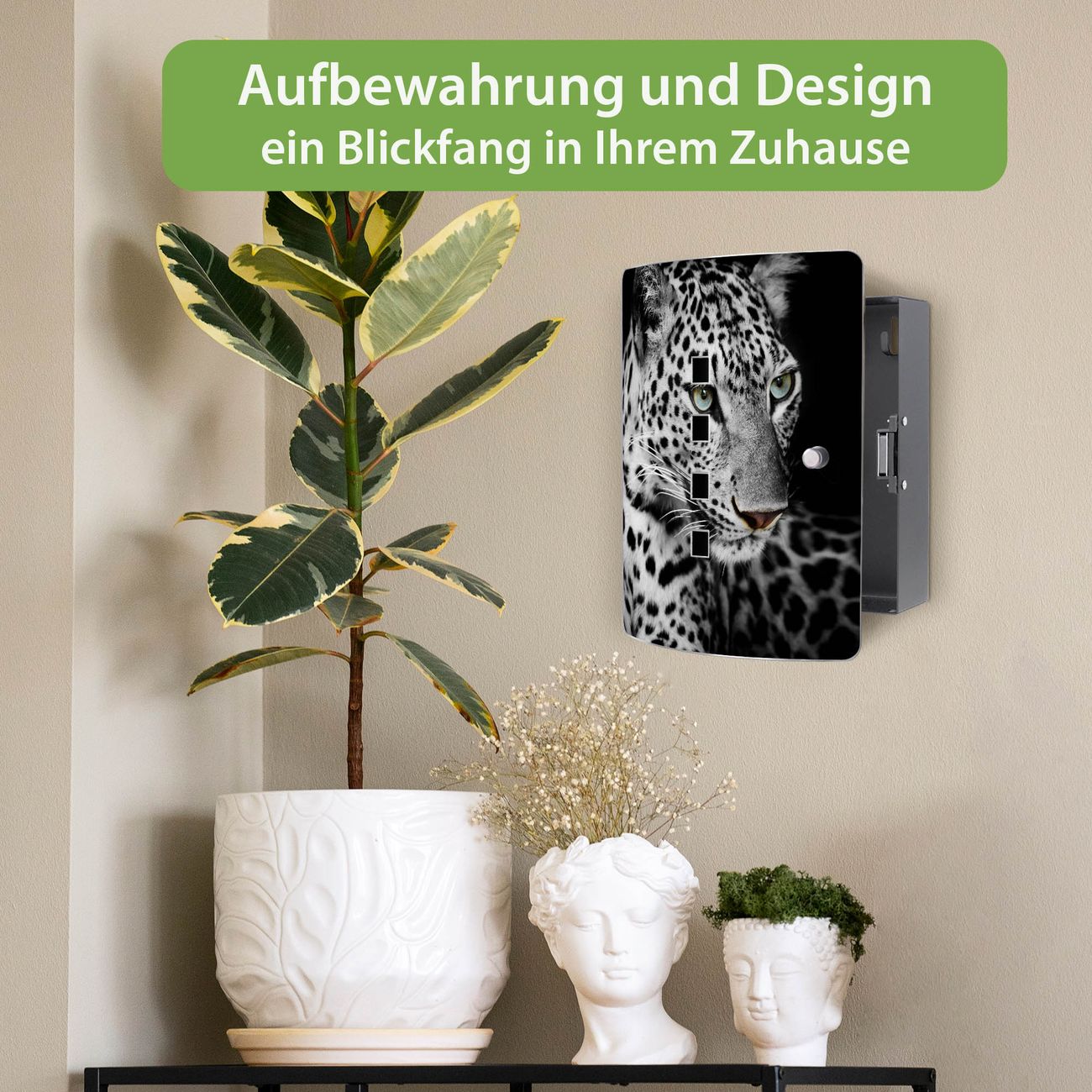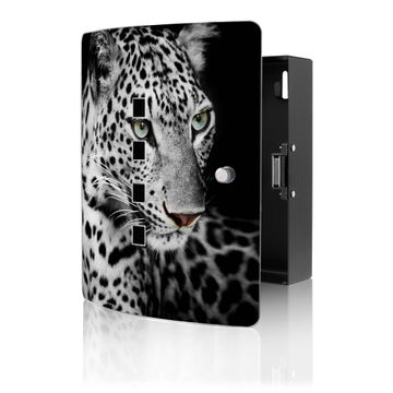 Der Schlüsselkasten ist gesamt 24x21x5cm groß und wiegt ca. 900g. Die Fronttür hat eine 90° Öffnung und besteht aus Edelstahl. Das Gehäuse ist zeitlos schwarz und aus Stahl gefertigt.