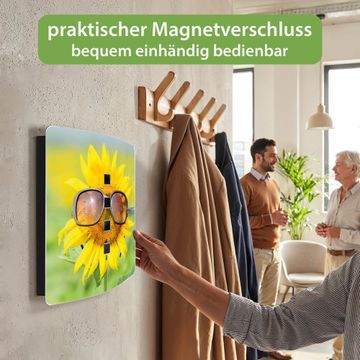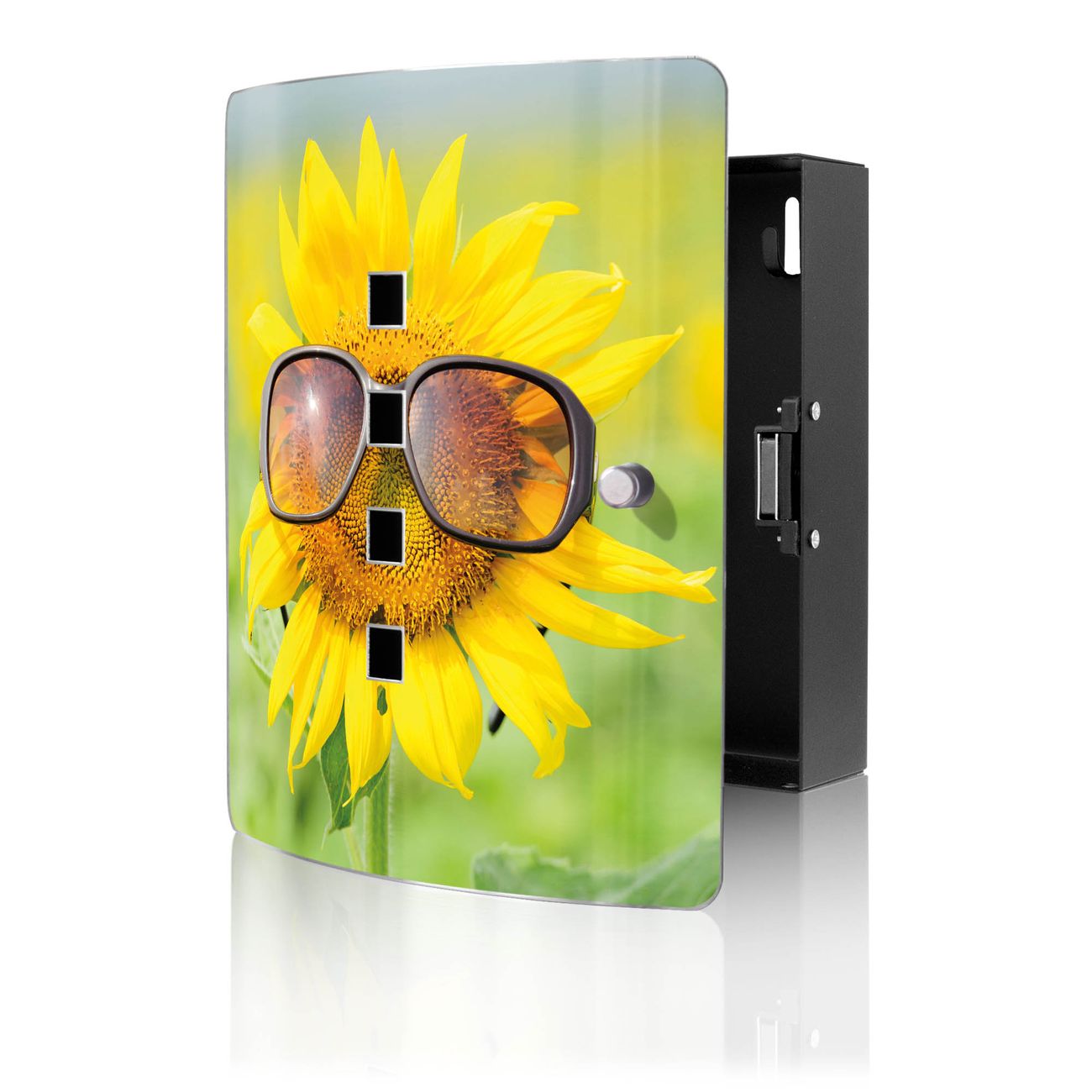 Funktion / Nutzen: Die leicht geschwungene Edelstahltür ist mit einer hochwertigen Motivfolie und dem Motiv Motiv Sunny kaschiert. Ein praktischer Magnetverschluss ermöglicht Ihnen ein schnelles Öffnen und Schließen. Befestigt wird der Schlüsselkasten an 2 Stellen auf der Rückseite, passendes Montagematerial fügen wir bereits bei.