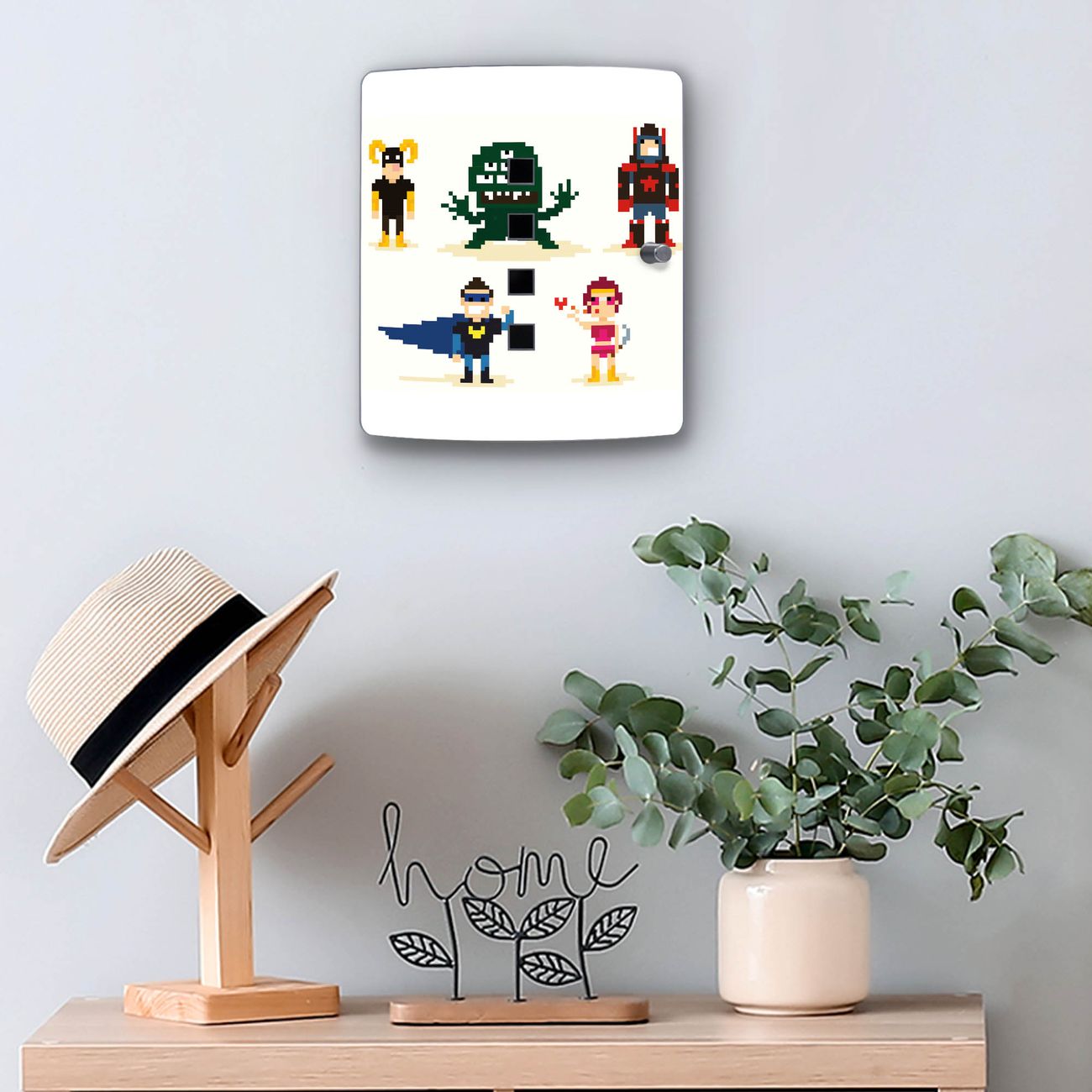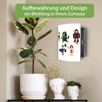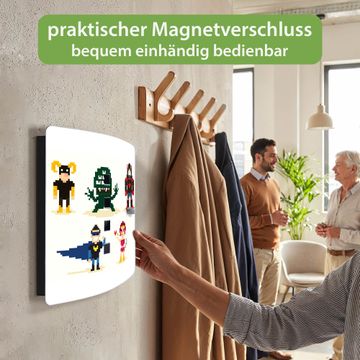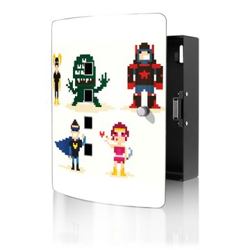 Funktion / Nutzen: Die leicht geschwungene Edelstahltür ist mit einer hochwertigen Motivfolie und dem Motiv Motiv Superhelden kaschiert. Ein praktischer Magnetverschluss ermöglicht Ihnen ein schnelles Öffnen und Schließen. Befestigt wird der Schlüsselkasten an 2 Stellen auf der Rückseite, passendes Montagematerial fügen wir bereits bei.