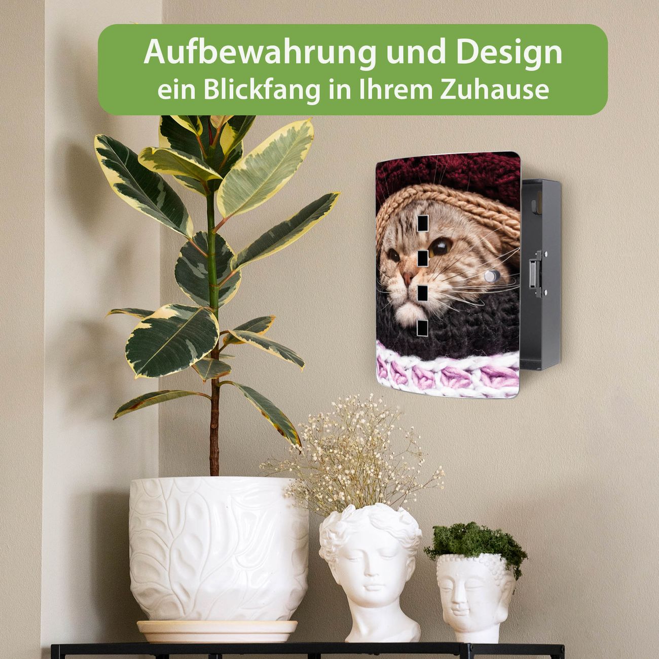 Funktion / Nutzen: Die leicht geschwungene Edelstahltür ist mit einer hochwertigen Motivfolie und dem Motiv Motiv Theo kaschiert. Ein praktischer Magnetverschluss ermöglicht Ihnen ein schnelles Öffnen und Schließen. Befestigt wird der Schlüsselkasten an 2 Stellen auf der Rückseite, passendes Montagematerial fügen wir bereits bei.