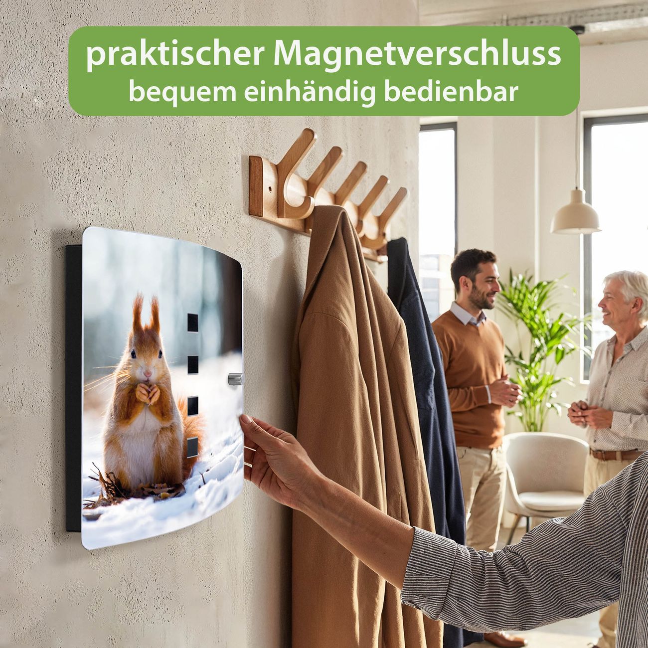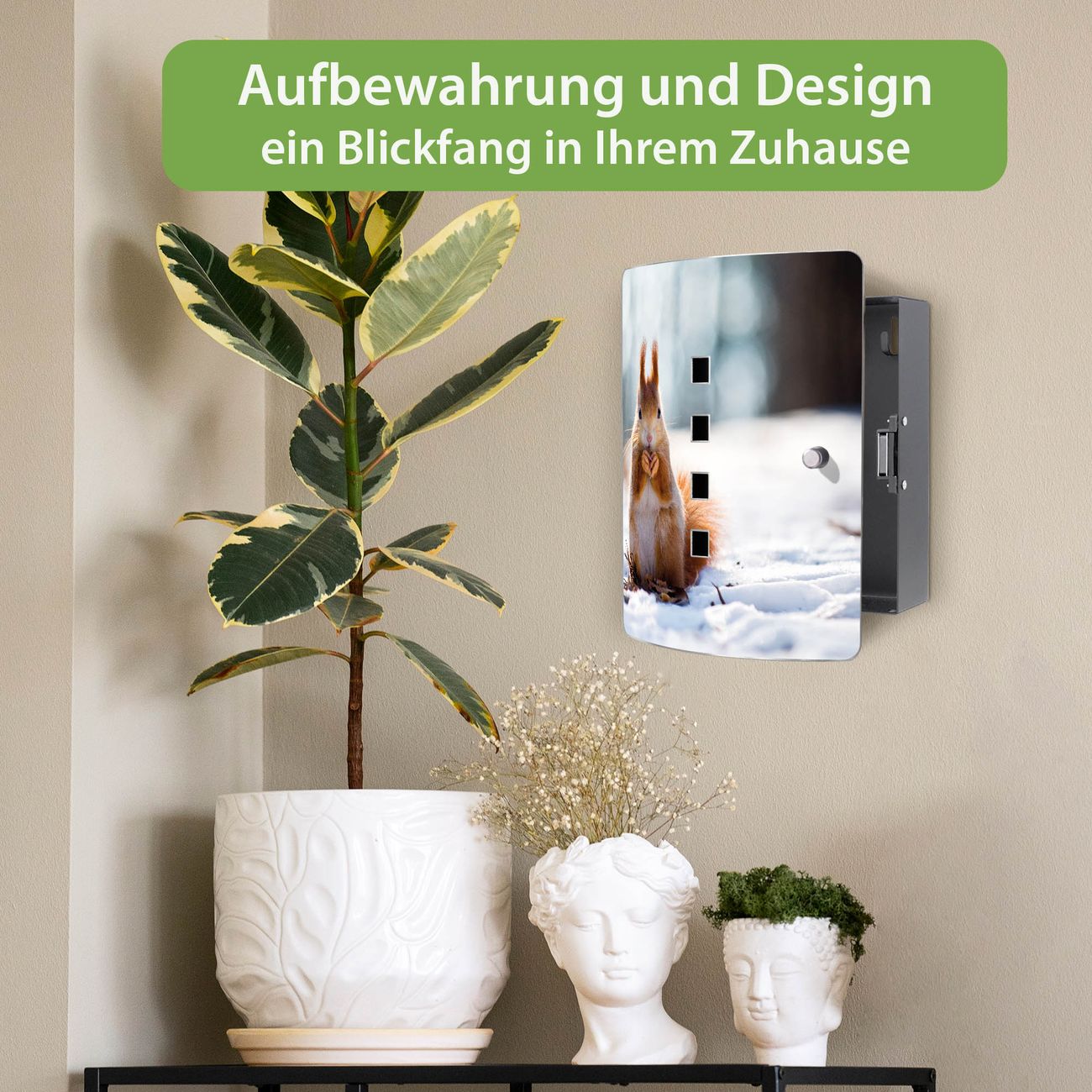 Funktion / Nutzen: Die leicht geschwungene Edelstahltür ist mit einer hochwertigen Motivfolie und dem Motiv Motiv Tiny Tim kaschiert. Ein praktischer Magnetverschluss ermöglicht Ihnen ein schnelles Öffnen und Schließen. Befestigt wird der Schlüsselkasten an 2 Stellen auf der Rückseite, passendes Montagematerial fügen wir bereits bei.
