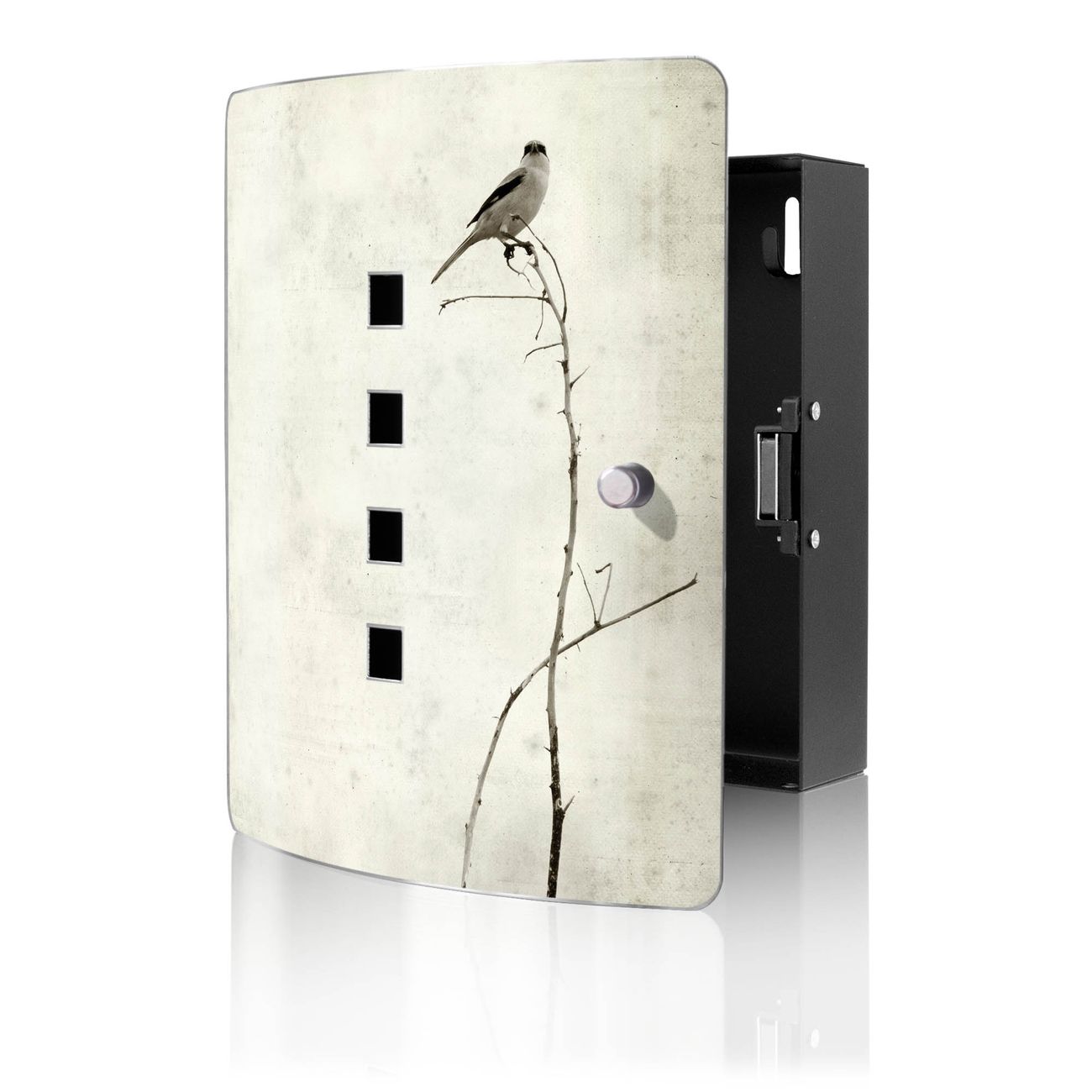 Funktion / Nutzen: Die leicht geschwungene Edelstahltür ist mit einer hochwertigen Motivfolie und dem Motiv Motiv Tristessa kaschiert. Ein praktischer Magnetverschluss ermöglicht Ihnen ein schnelles Öffnen und Schließen. Befestigt wird der Schlüsselkasten an 2 Stellen auf der Rückseite, passendes Montagematerial fügen wir bereits bei.
