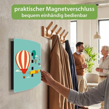 Funktion / Nutzen: Die leicht geschwungene Edelstahltür ist mit einer hochwertigen Motivfolie und dem Motiv Motiv Vier Ballons kaschiert. Ein praktischer Magnetverschluss ermöglicht Ihnen ein schnelles Öffnen und Schließen. Befestigt wird der Schlüsselkasten an 2 Stellen auf der Rückseite, passendes Montagematerial fügen wir bereits bei.