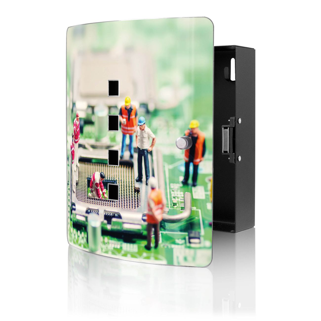 Funktion / Nutzen: Die leicht geschwungene Edelstahltür ist mit einer hochwertigen Motivfolie und dem Motiv Motiv Wartungsarbeiten kaschiert. Ein praktischer Magnetverschluss ermöglicht Ihnen ein schnelles Öffnen und Schließen. Befestigt wird der Schlüsselkasten an 2 Stellen auf der Rückseite, passendes Montagematerial fügen wir bereits bei.