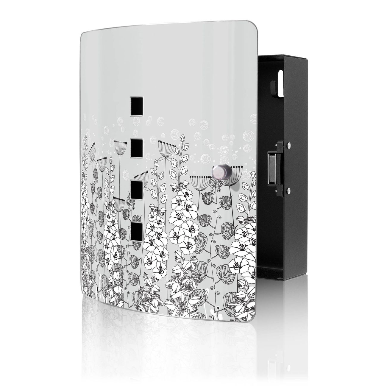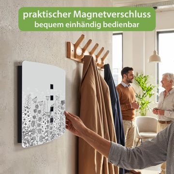 Funktion / Nutzen: Die leicht geschwungene Edelstahltür ist mit einer hochwertigen Motivfolie und dem Motiv Motiv Wegesrand kaschiert. Ein praktischer Magnetverschluss ermöglicht Ihnen ein schnelles Öffnen und Schließen. Befestigt wird der Schlüsselkasten an 2 Stellen auf der Rückseite, passendes Montagematerial fügen wir bereits bei.