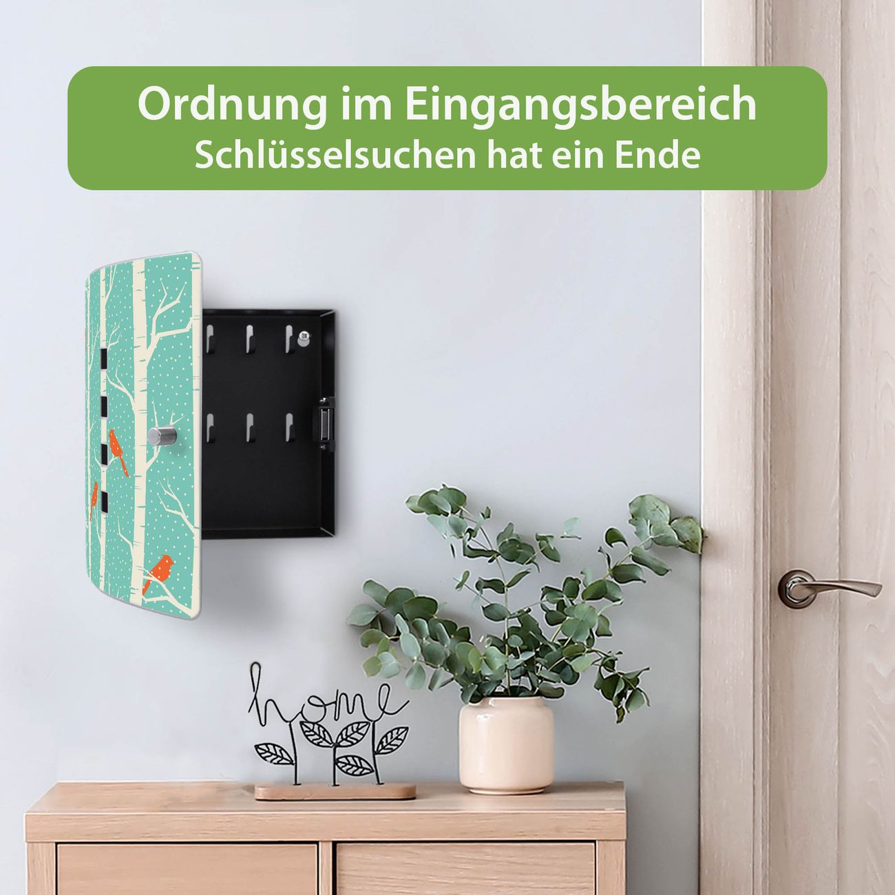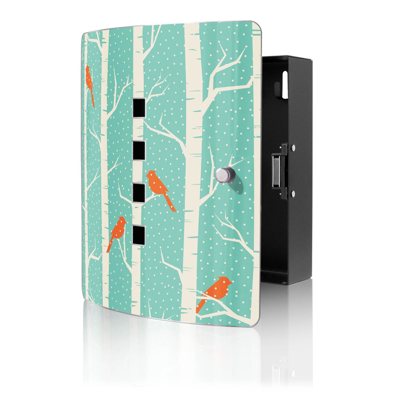 Funktion / Nutzen: Die leicht geschwungene Edelstahltür ist mit einer hochwertigen Motivfolie und dem Motiv Motiv Wintervögel kaschiert. Ein praktischer Magnetverschluss ermöglicht Ihnen ein schnelles Öffnen und Schließen. Befestigt wird der Schlüsselkasten an 2 Stellen auf der Rückseite, passendes Montagematerial fügen wir bereits bei.