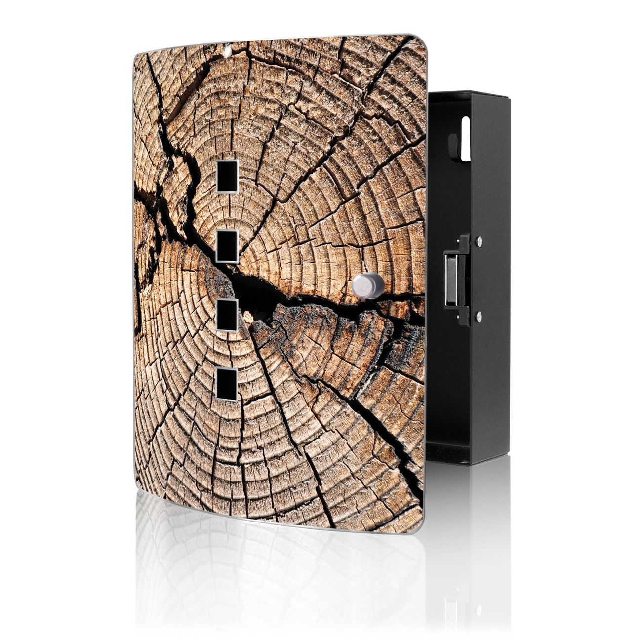 Funktion / Nutzen: Die leicht geschwungene Edelstahltür ist mit einer hochwertigen Motivfolie und dem Motiv Motiv Zeichen Der Zeit kaschiert. Ein praktischer Magnetverschluss ermöglicht Ihnen ein schnelles Öffnen und Schließen. Befestigt wird der Schlüsselkasten an 2 Stellen auf der Rückseite, passendes Montagematerial fügen wir bereits bei.