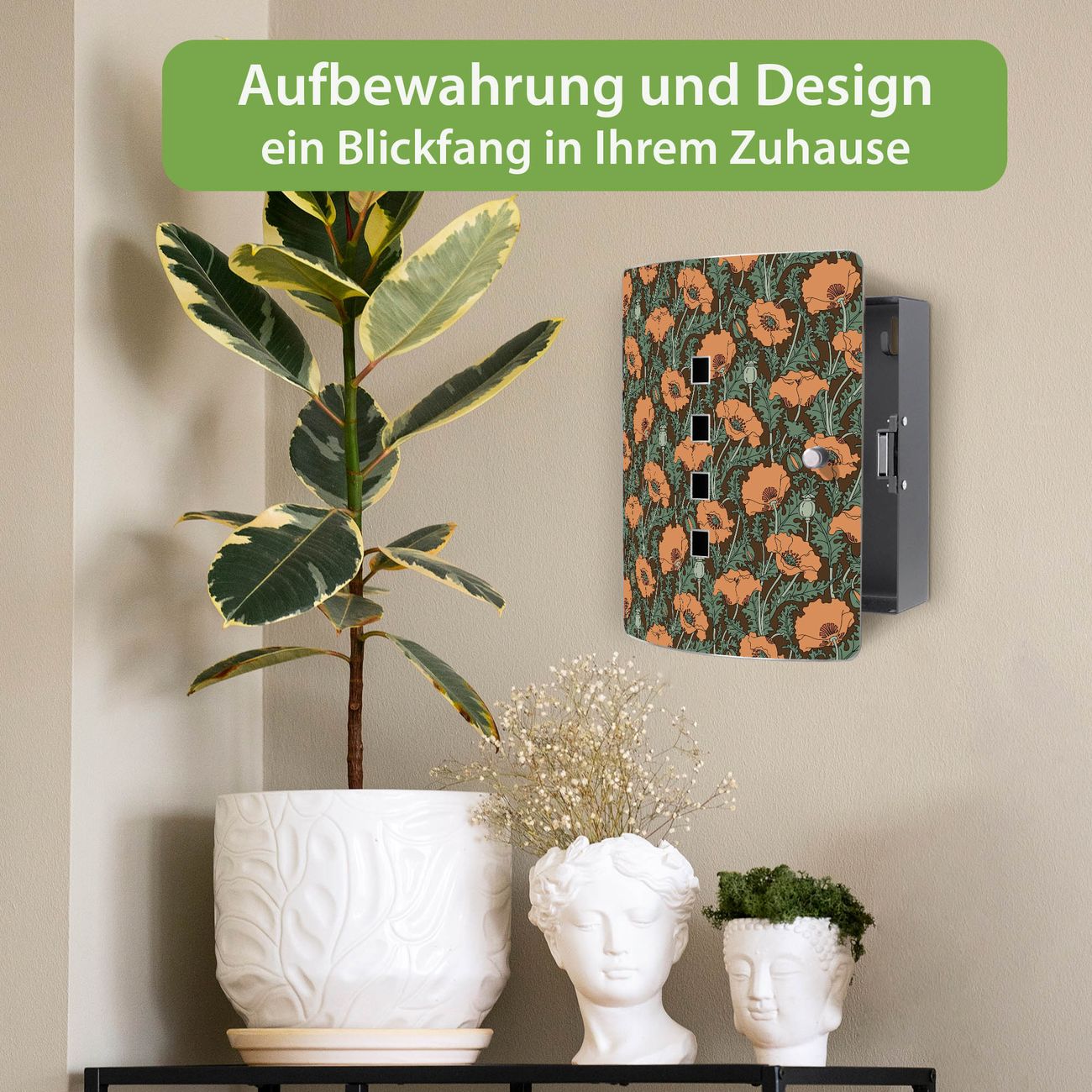 Schlüsselkasten Motiv Zeichnung Mohn