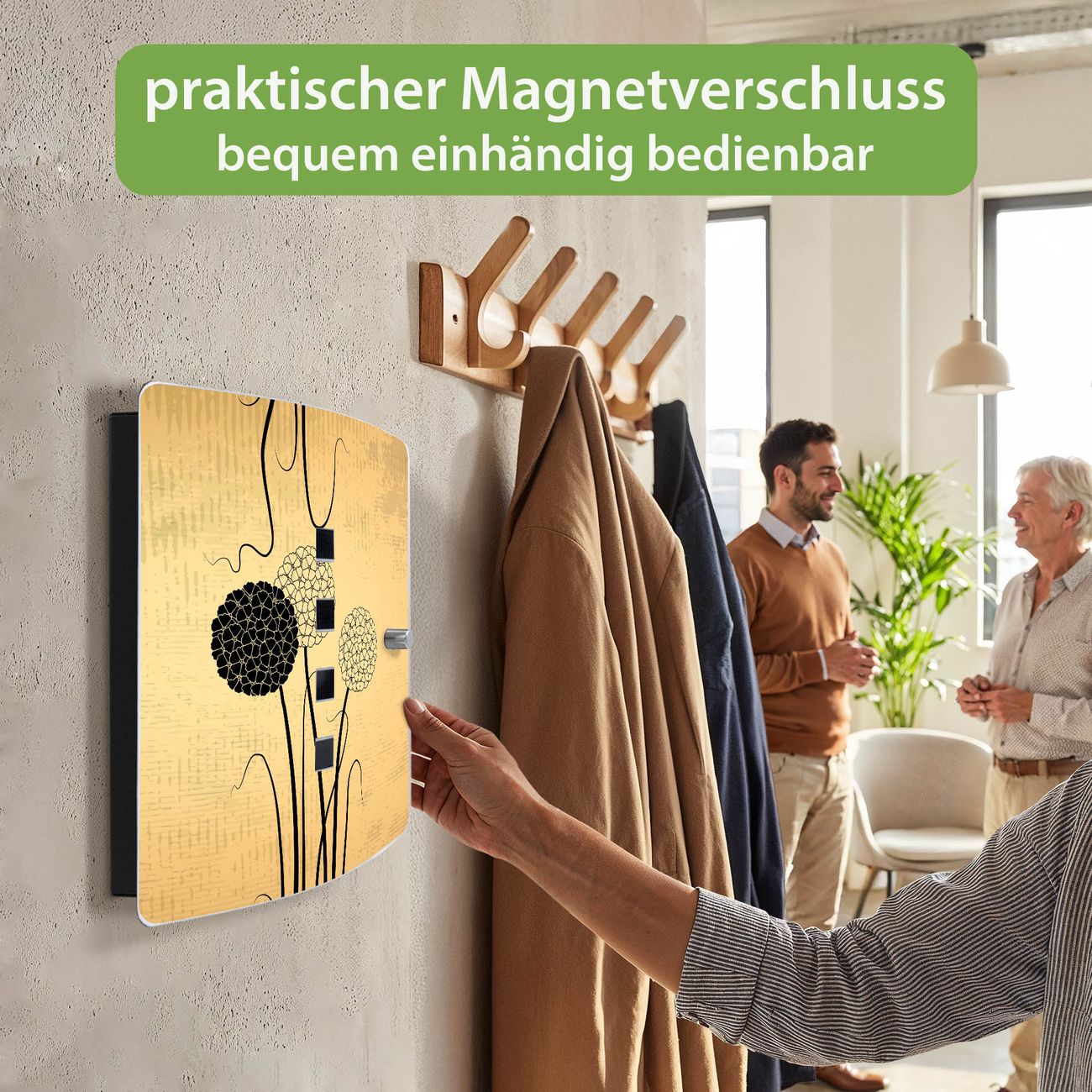 Funktion / Nutzen: Die leicht geschwungene Edelstahltür ist mit einer hochwertigen Motivfolie und dem Motiv Motiv Zwiebel Vintage kaschiert. Ein praktischer Magnetverschluss ermöglicht Ihnen ein schnelles Öffnen und Schließen. Befestigt wird der Schlüsselkasten an 2 Stellen auf der Rückseite, passendes Montagematerial fügen wir bereits bei.