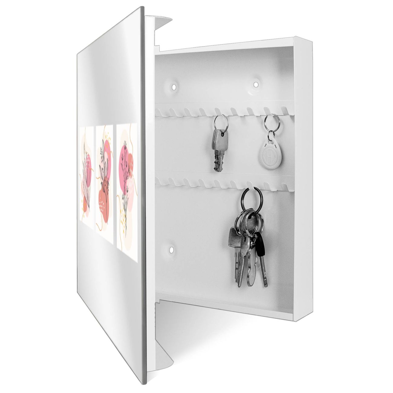 Spiegel Schlüsselkasten - Design Schlüsselbox Motiv Abstrakte Blumenkomposition