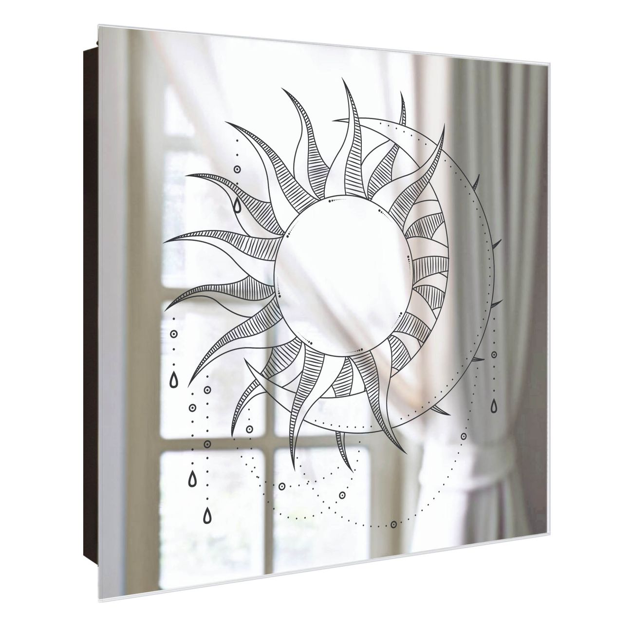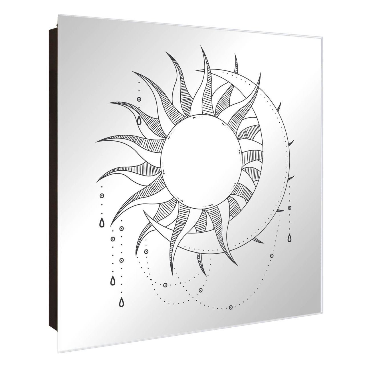 Bringe Ordnung und Stil in deinen Eingangsbereich mit dem banjado Schlüsselkasten mit Spiegel. Die elegante Spiegelfront kombiniert Funktionalität mit modernem Design und macht die Schlüsselaufbewahrung zu einem dekorativen Highlight. ✅ Spiegel Schlüsselaufbewahrung mit Motiv Motiv Astronomie 7 Der Design-Schlüsselkasten Motiv Motiv Astronomie 7 bietet Platz für bis zu 50 Schlüssel, die auf 5 stabilen Reihen mit je 10 Haken übersichtlich verstaut werden. Mit seinen kompakten Maßen von 30 x 30 x 5 cm passt die Schlüsselbox perfekt auch in kleinere Räume. Der schwarz lackierte Stahlkorpus mit rechts angeschlagenem Türscharnier harmoniert mit der Spiegelfront und fügt sich nahtlos in jedes Wohnambiente ein. Ob als Schlüsselorganizer für Zuhause oder als praktische Lösung für Büros, Praxen und Gewerbe, der banjado Schlüsselkasten sorgt für Ordnung und Übersicht. Die Spiegelfront verleiht dem Eingangsbereich zusätzliche Funktionalität und lässt Räume optisch größer wirken. Die Schlüsselbox Motiv Motiv Astronomie 7 zur Wandmontage wird inklusive Befestigungsmaterial geliefert und ist schnell angebracht. So hast du deine Schlüssel jederzeit griffbereit und zugleich stilvoll verstaut. Mit diesem banjado Schlüsselkasten Motiv Motiv Astronomie 7 kombinierst du praktische Aufbewahrung mit stilvollem Wohndesign. Ob privat oder geschäftlich, die Schlüsselbox sorgt für mehr Ordnung, Übersicht und ein wohnliches Ambiente.Vorteile im Überblick
