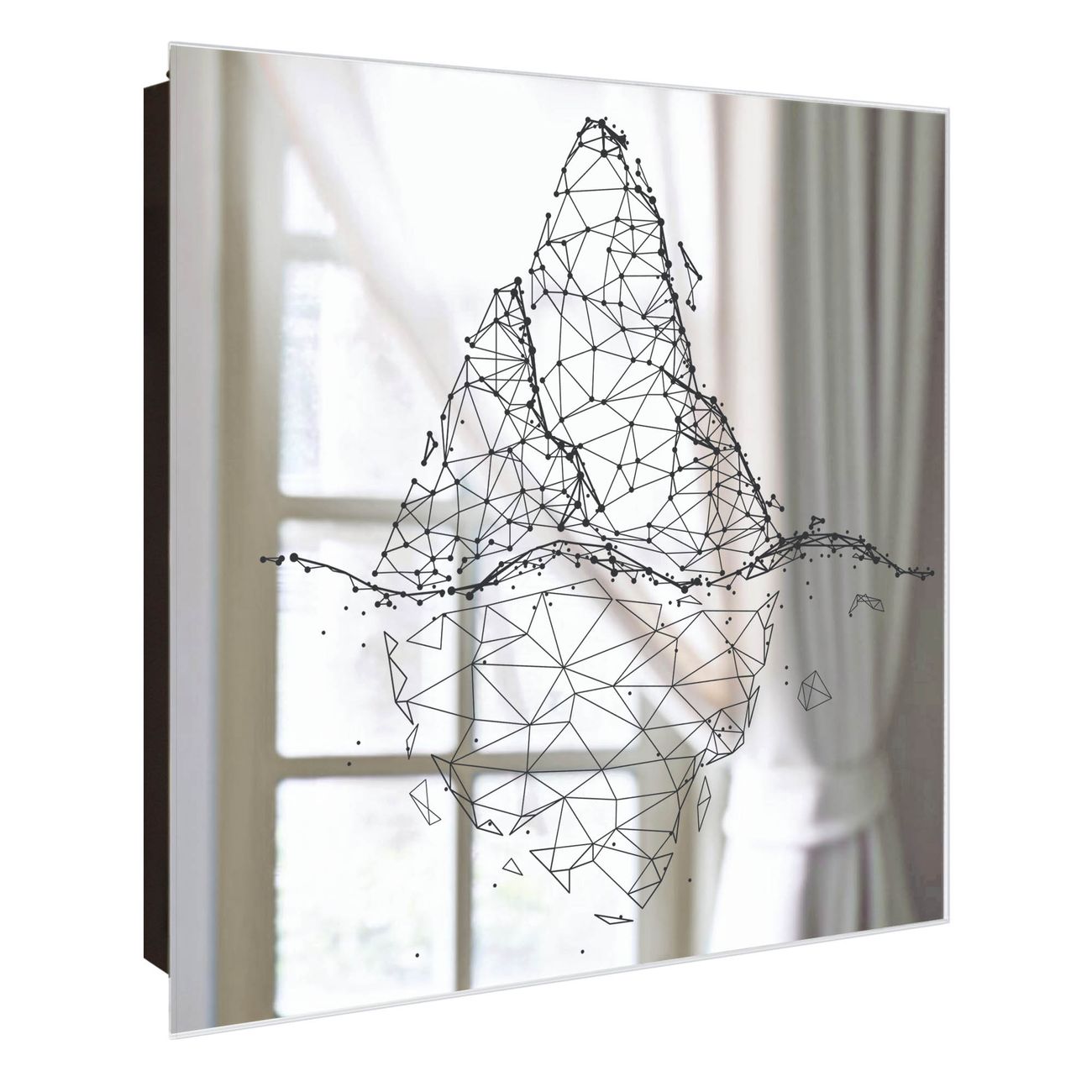 Bringe Ordnung und Stil in deinen Eingangsbereich mit dem banjado Schlüsselkasten mit Spiegel. Die elegante Spiegelfront kombiniert Funktionalität mit modernem Design und macht die Schlüsselaufbewahrung zu einem dekorativen Highlight. ✅ Spiegel Schlüsselaufbewahrung mit Motiv Motiv Eisberg abstrakt 2 Der Design-Schlüsselkasten Motiv Motiv Eisberg abstrakt 2 bietet Platz für bis zu 50 Schlüssel, die auf 5 stabilen Reihen mit je 10 Haken übersichtlich verstaut werden. Mit seinen kompakten Maßen von 30 x 30 x 5 cm passt die Schlüsselbox perfekt auch in kleinere Räume. Der schwarz lackierte Stahlkorpus mit rechts angeschlagenem Türscharnier harmoniert mit der Spiegelfront und fügt sich nahtlos in jedes Wohnambiente ein. Ob als Schlüsselorganizer für Zuhause oder als praktische Lösung für Büros, Praxen und Gewerbe, der banjado Schlüsselkasten sorgt für Ordnung und Übersicht. Die Spiegelfront verleiht dem Eingangsbereich zusätzliche Funktionalität und lässt Räume optisch größer wirken. Die Schlüsselbox Motiv Motiv Eisberg abstrakt 2 zur Wandmontage wird inklusive Befestigungsmaterial geliefert und ist schnell angebracht. So hast du deine Schlüssel jederzeit griffbereit und zugleich stilvoll verstaut. Mit diesem banjado Schlüsselkasten Motiv Motiv Eisberg abstrakt 2 kombinierst du praktische Aufbewahrung mit stilvollem Wohndesign. Ob privat oder geschäftlich, die Schlüsselbox sorgt für mehr Ordnung, Übersicht und ein wohnliches Ambiente.Vorteile im Überblick