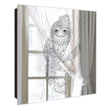 Spiegel Schlüsselkasten - Design Schlüsselbox Motiv Faultier gezeichnet 2