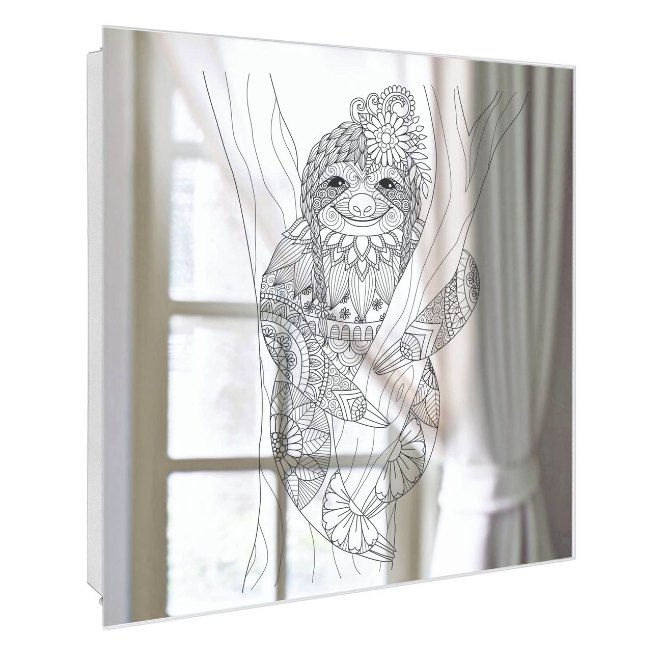 Spiegel Schlüsselkasten - Design Schlüsselbox Motiv Faultier gezeichnet 2