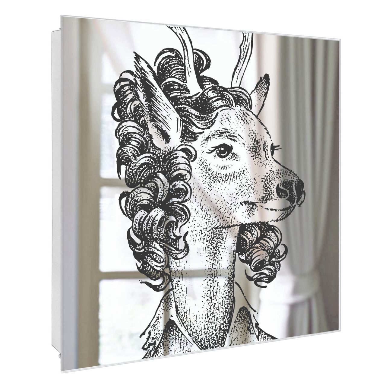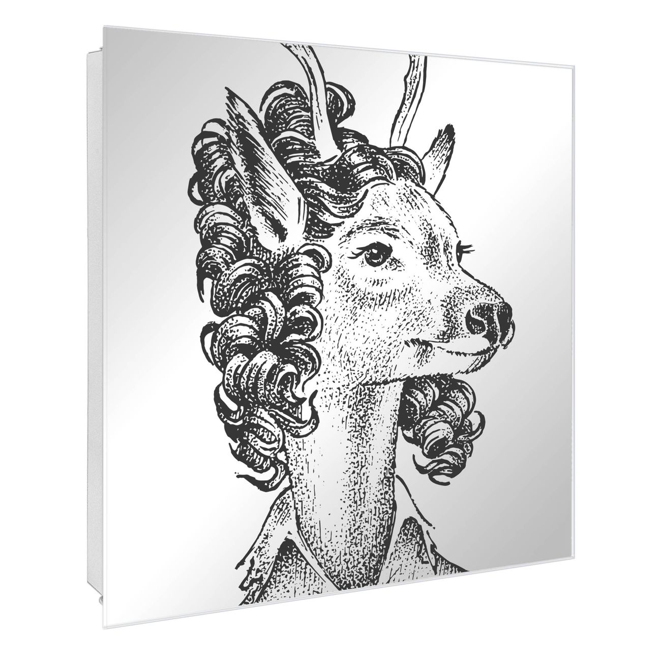 Spiegel Schlüsselkasten - Design Schlüsselbox Motiv Frau Hirsch 2