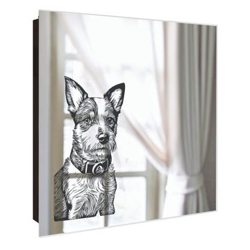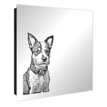 Spiegel Schlüsselkasten - Design Schlüsselbox Motiv Freundlicher Hund