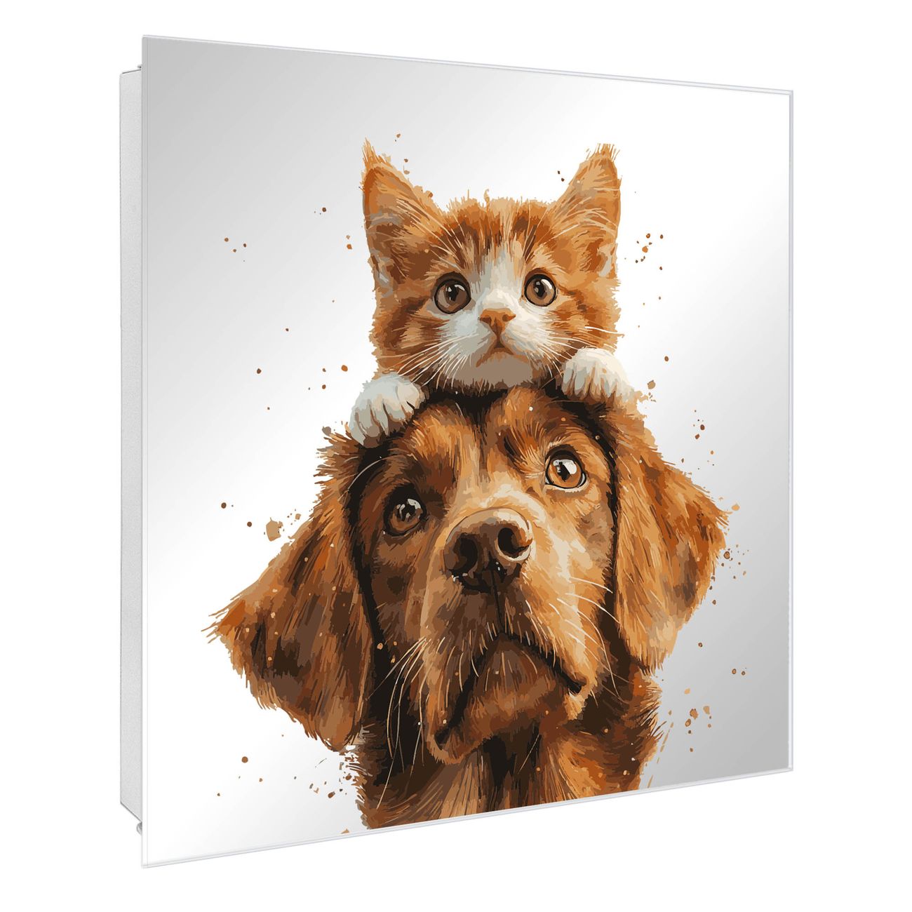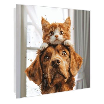 Spiegel Schlüsselkasten - Design Schlüsselbox Motiv Katzen- und Hundefreunde
