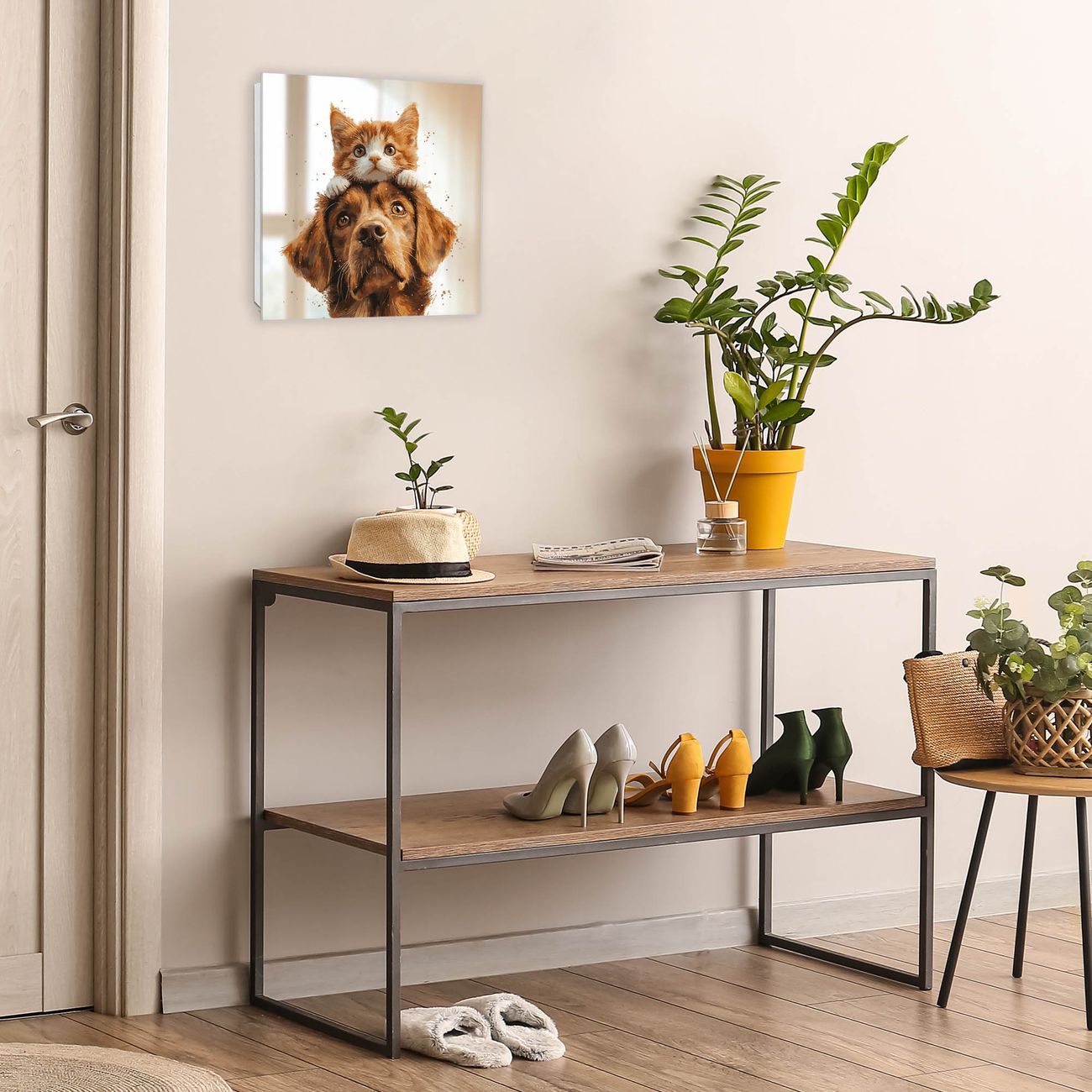 Bringe Ordnung und Stil in deinen Eingangsbereich mit dem banjado Schlüsselkasten mit Spiegel. Die elegante Spiegelfront kombiniert Funktionalität mit modernem Design und macht die Schlüsselaufbewahrung zu einem dekorativen Highlight. ✅ Spiegel Schlüsselaufbewahrung mit Motiv Motiv Katzen- und Hundefreunde Der Design-Schlüsselkasten Motiv Motiv Katzen- und Hundefreunde bietet Platz für bis zu 50 Schlüssel, die auf 5 stabilen Reihen mit je 10 Haken übersichtlich verstaut werden. Mit seinen kompakten Maßen von 30 x 30 x 5 cm passt die Schlüsselbox perfekt auch in kleinere Räume. Der weiß lackierte Stahlkorpus mit rechts angeschlagenem Türscharnier harmoniert mit der Spiegelfront und fügt sich nahtlos in jedes Wohnambiente ein. Ob als Schlüsselorganizer für Zuhause oder als praktische Lösung für Büros, Praxen und Gewerbe, der banjado Schlüsselkasten sorgt für Ordnung und Übersicht. Die Spiegelfront verleiht dem Eingangsbereich zusätzliche Funktionalität und lässt Räume optisch größer wirken. Die Schlüsselbox Motiv Motiv Katzen- und Hundefreunde zur Wandmontage wird inklusive Befestigungsmaterial geliefert und ist schnell angebracht. So hast du deine Schlüssel jederzeit griffbereit und zugleich stilvoll verstaut. Mit diesem banjado Schlüsselkasten Motiv Motiv Katzen- und Hundefreunde kombinierst du praktische Aufbewahrung mit stilvollem Wohndesign. Ob privat oder geschäftlich, die Schlüsselbox sorgt für mehr Ordnung, Übersicht und ein wohnliches Ambiente.Vorteile im Überblick